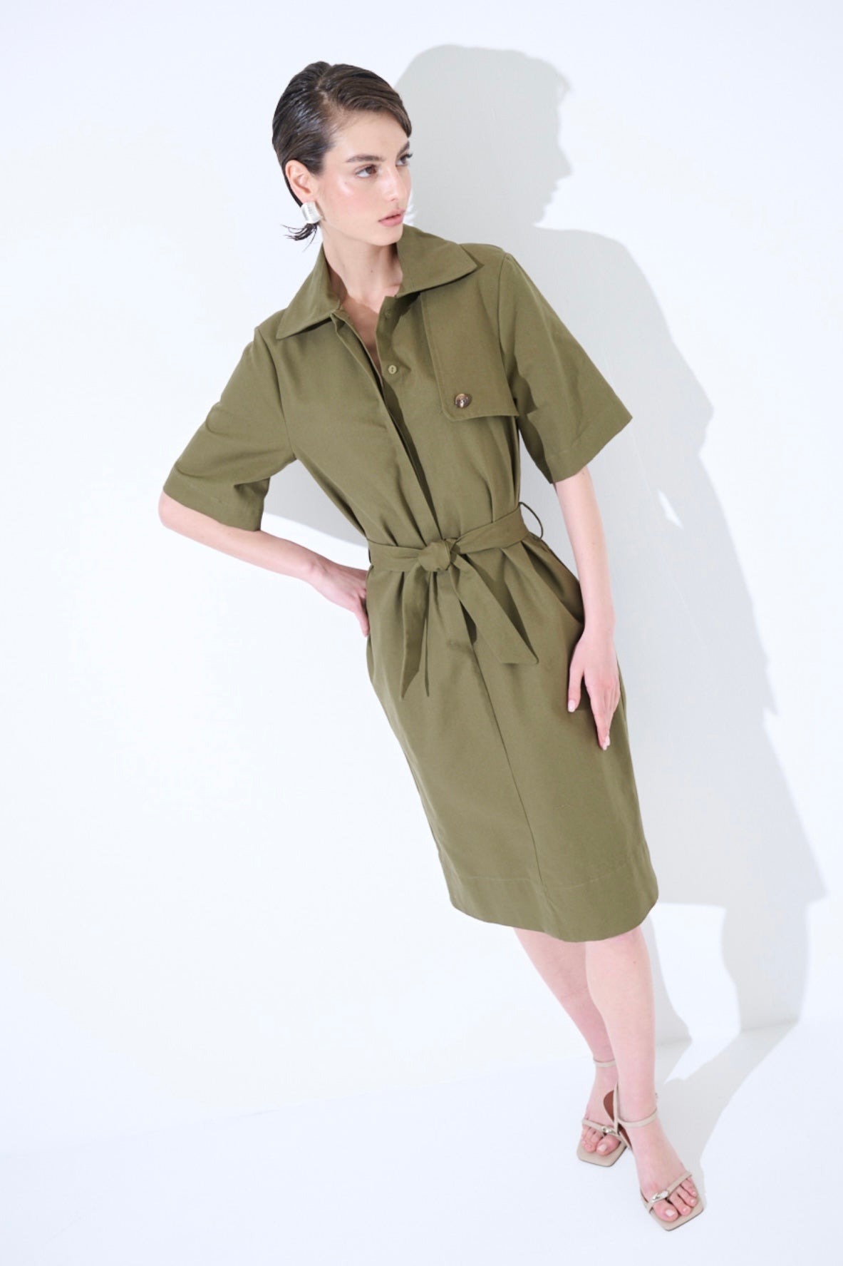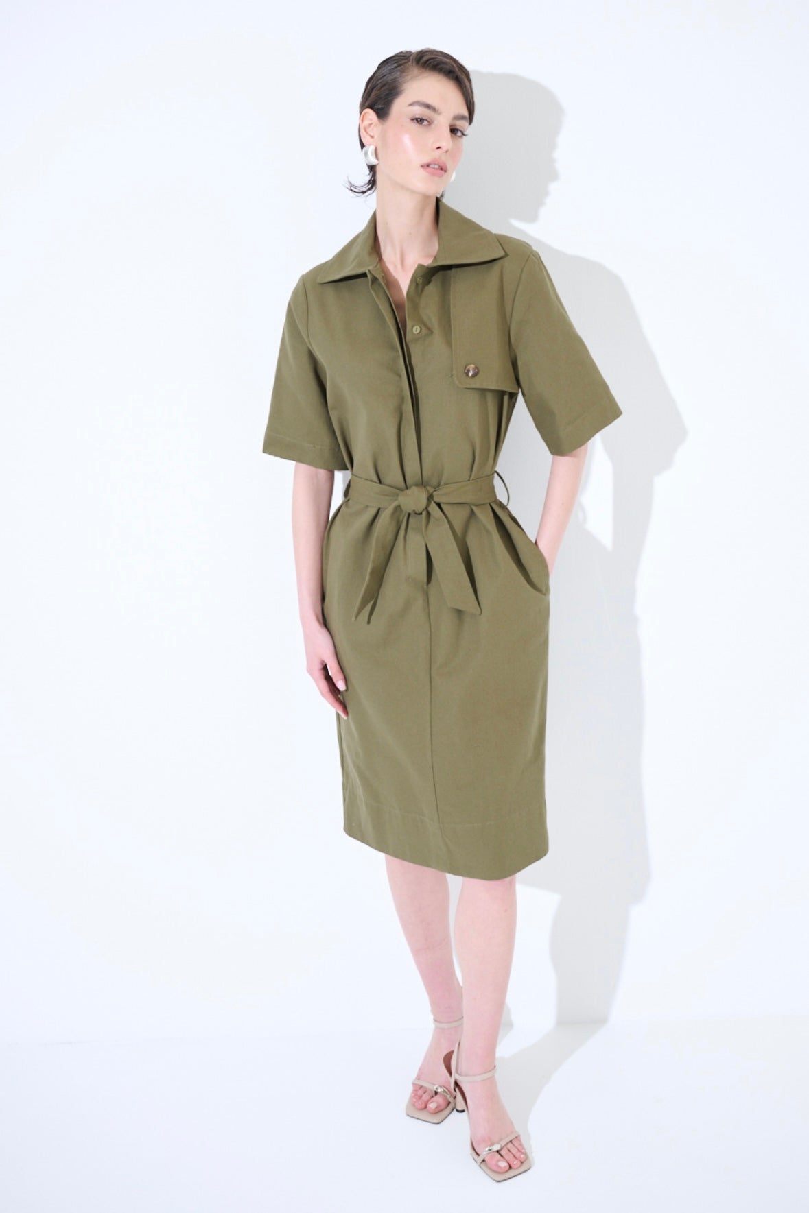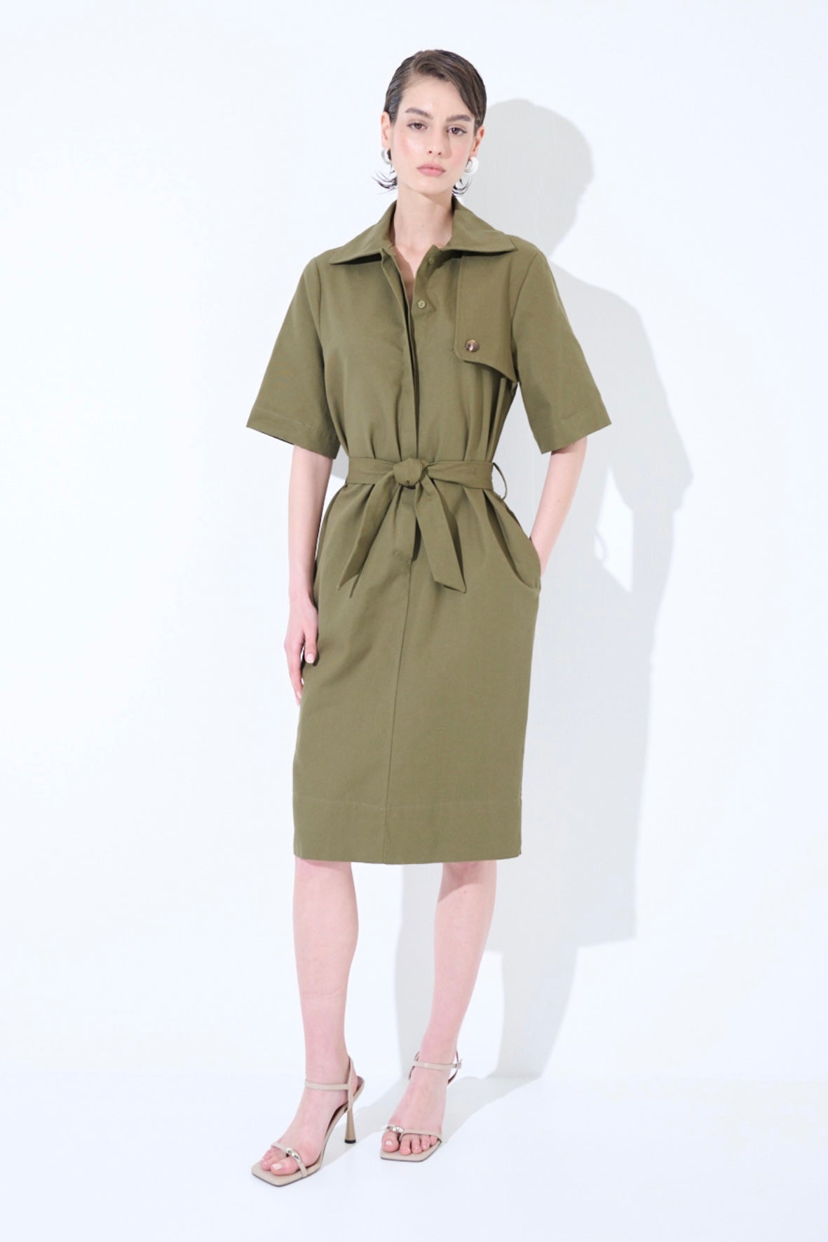 Snížit množství produktu Army zelené pouzdrové bavlněné šaty