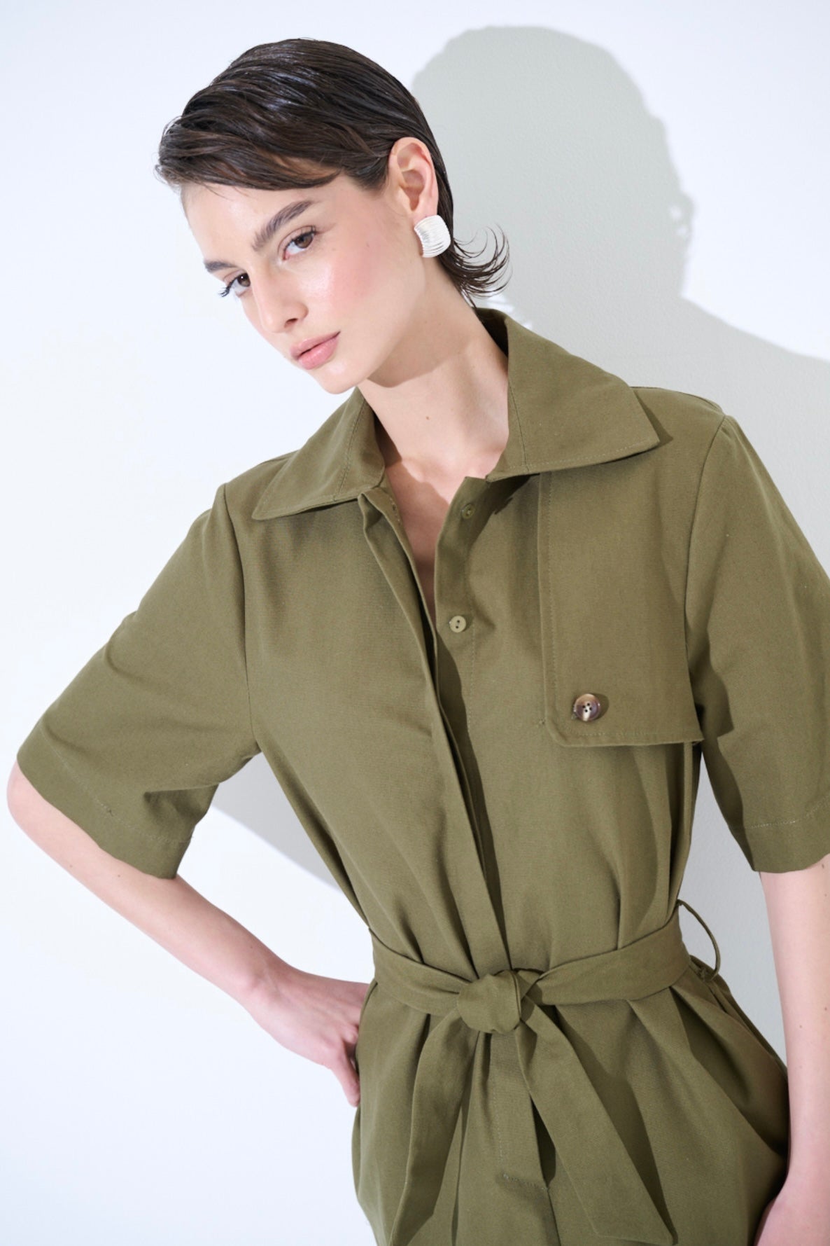 Army zelené pouzdrové bavlněné šaty