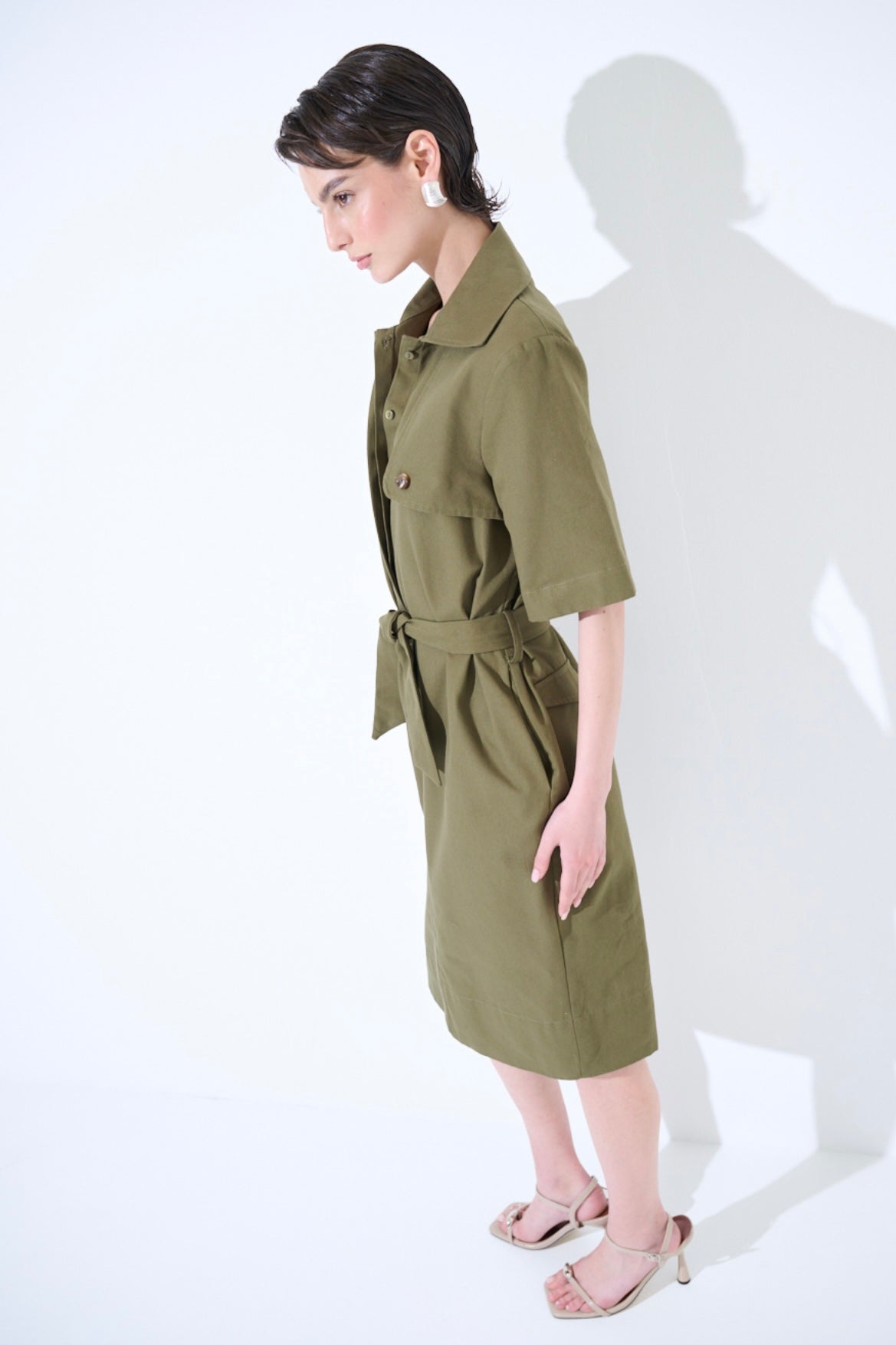 Zvýšit množství produktu Army zelené pouzdrové bavlněné šaty