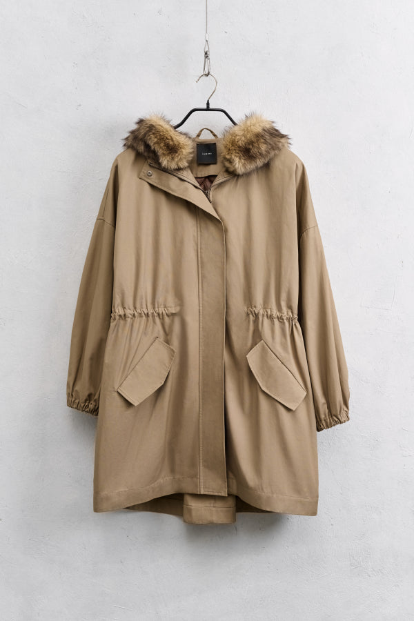 Béžová parka s kapucí a kožešinou