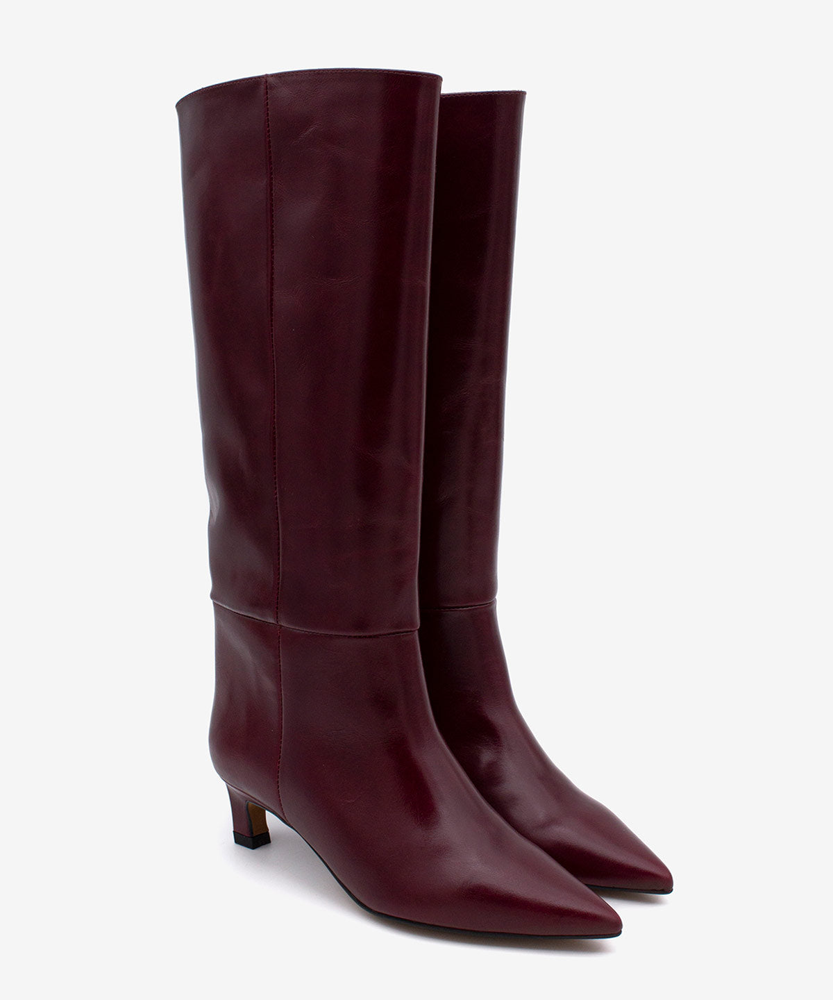 Snížit množství produktu Bordó sloupové kozačky na rovném podpatku do špičky