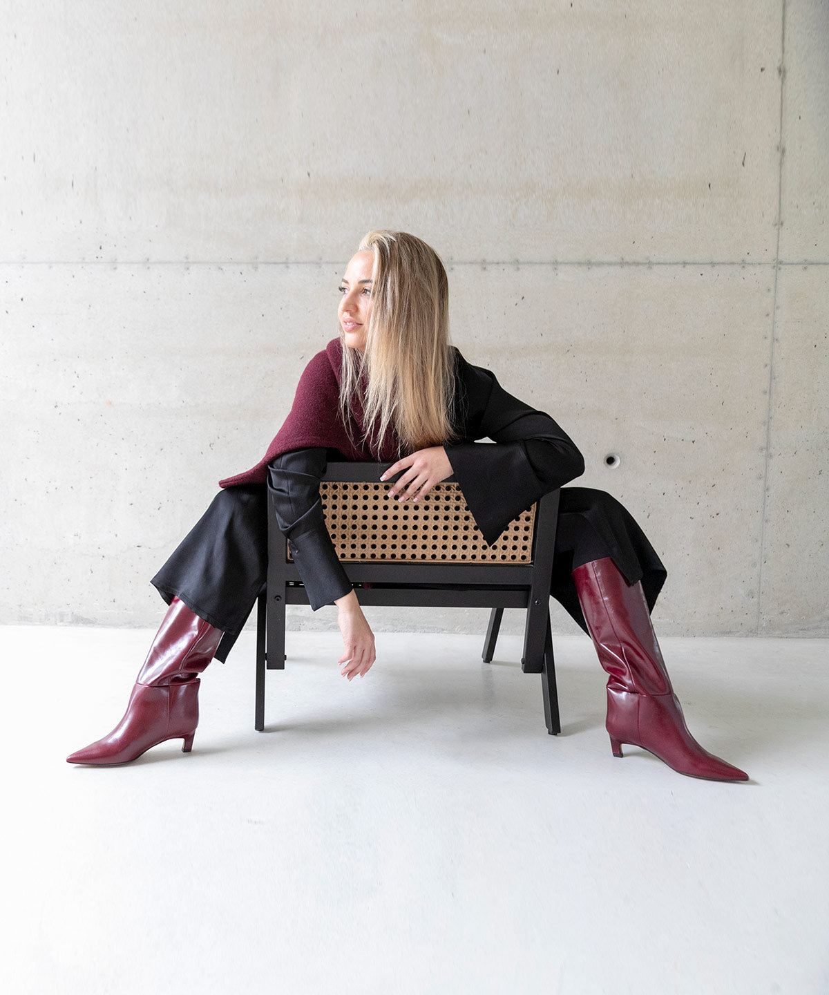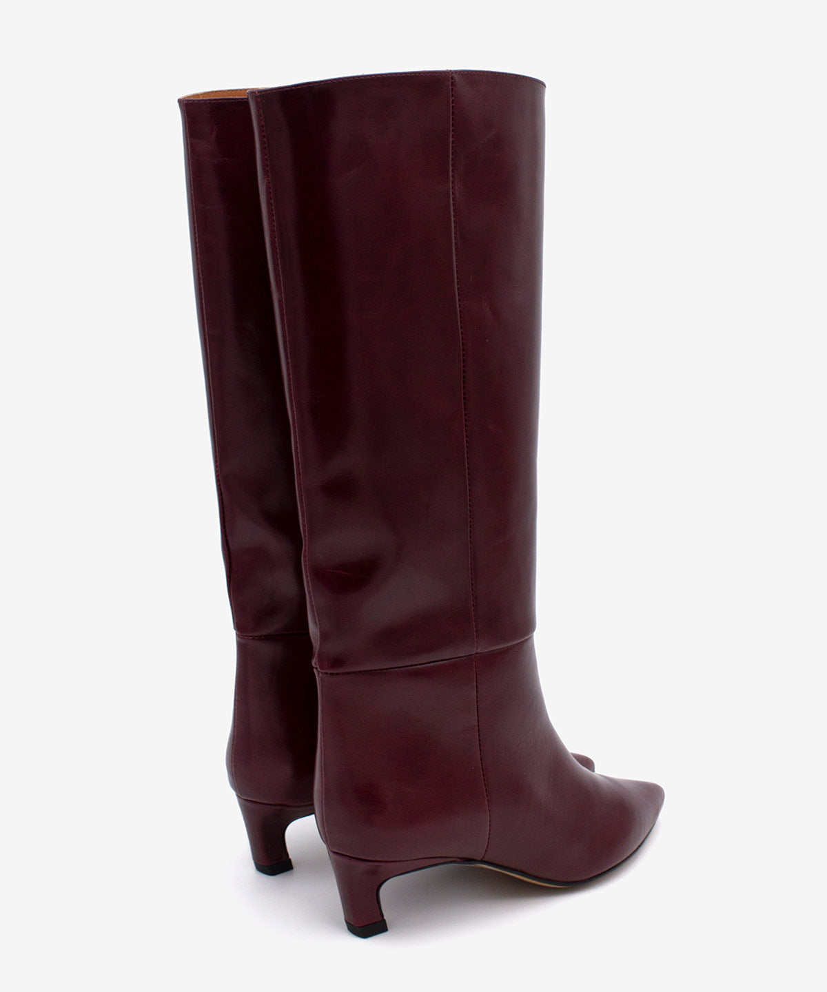Bordó sloupové kozačky na rovném podpatku do špičky