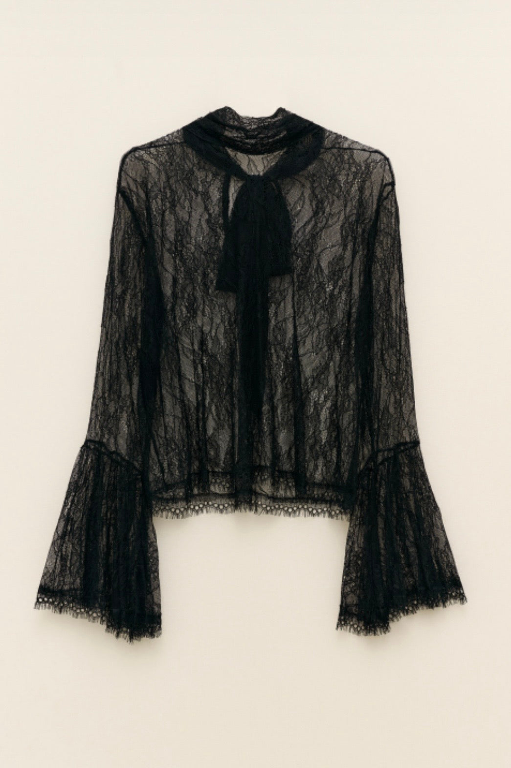 Zvýšit množství produktu Černý krajkový top se zvonovými rukávy