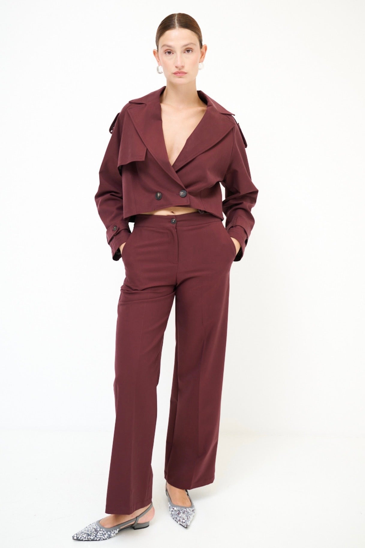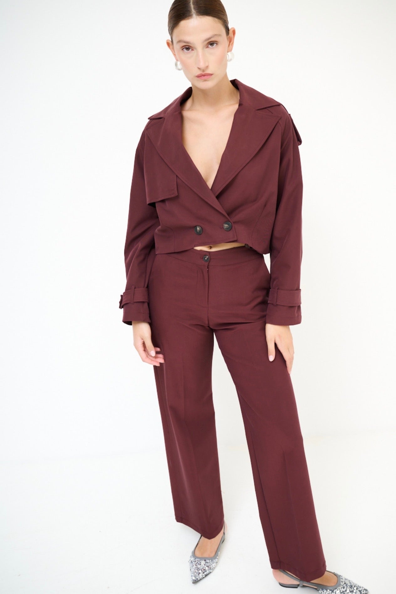 Cihlové kalhoty s příměsí rayonu