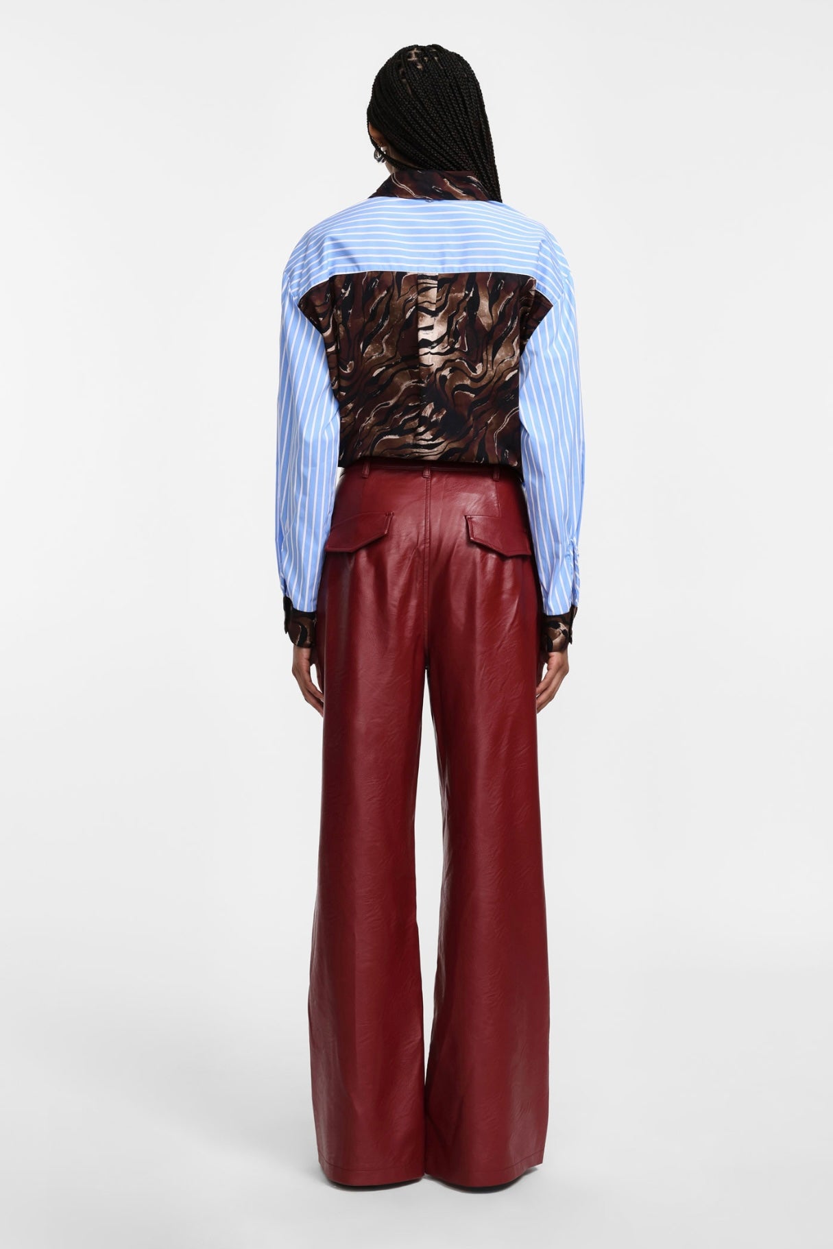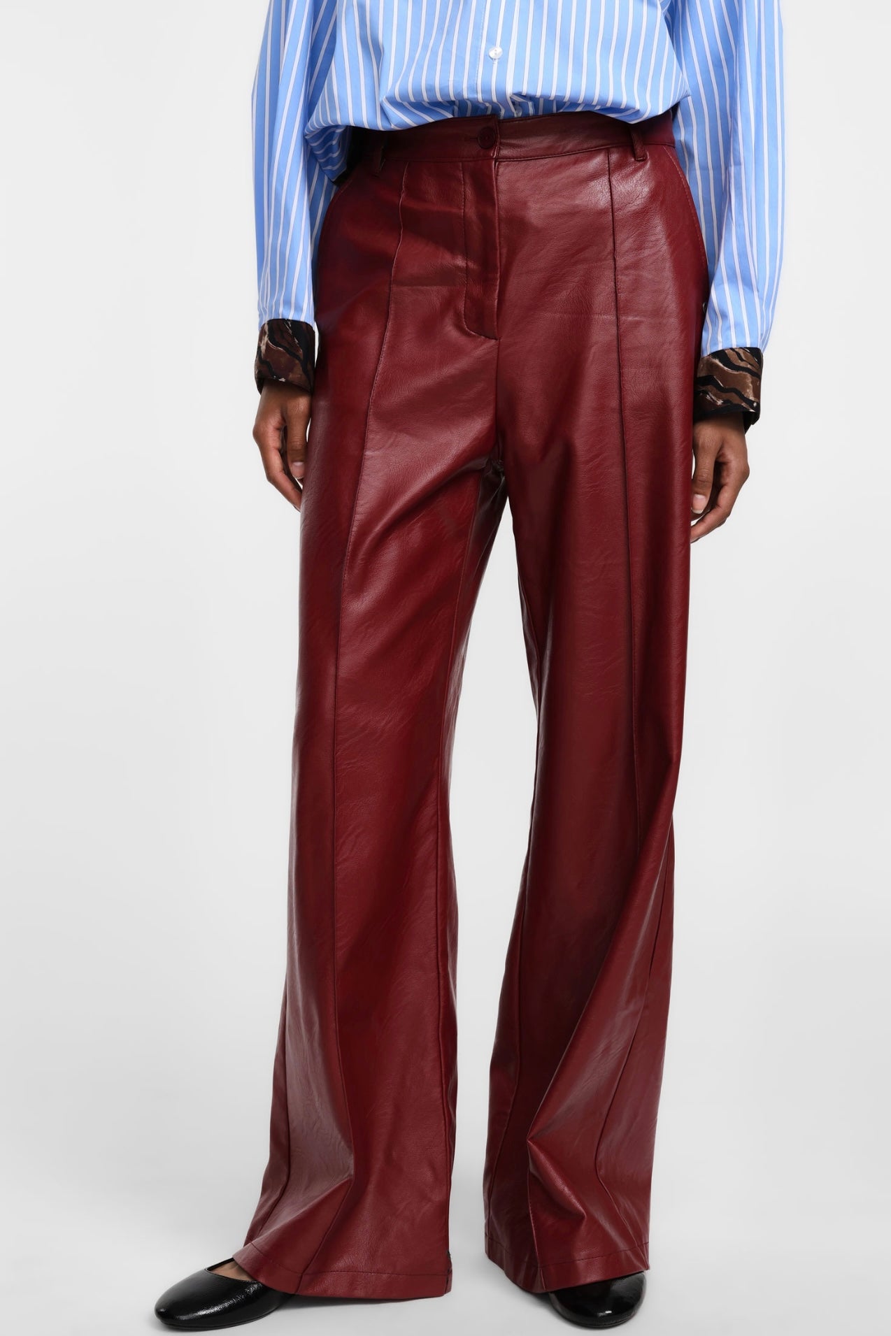 Červené široké kalhoty z eko kůže