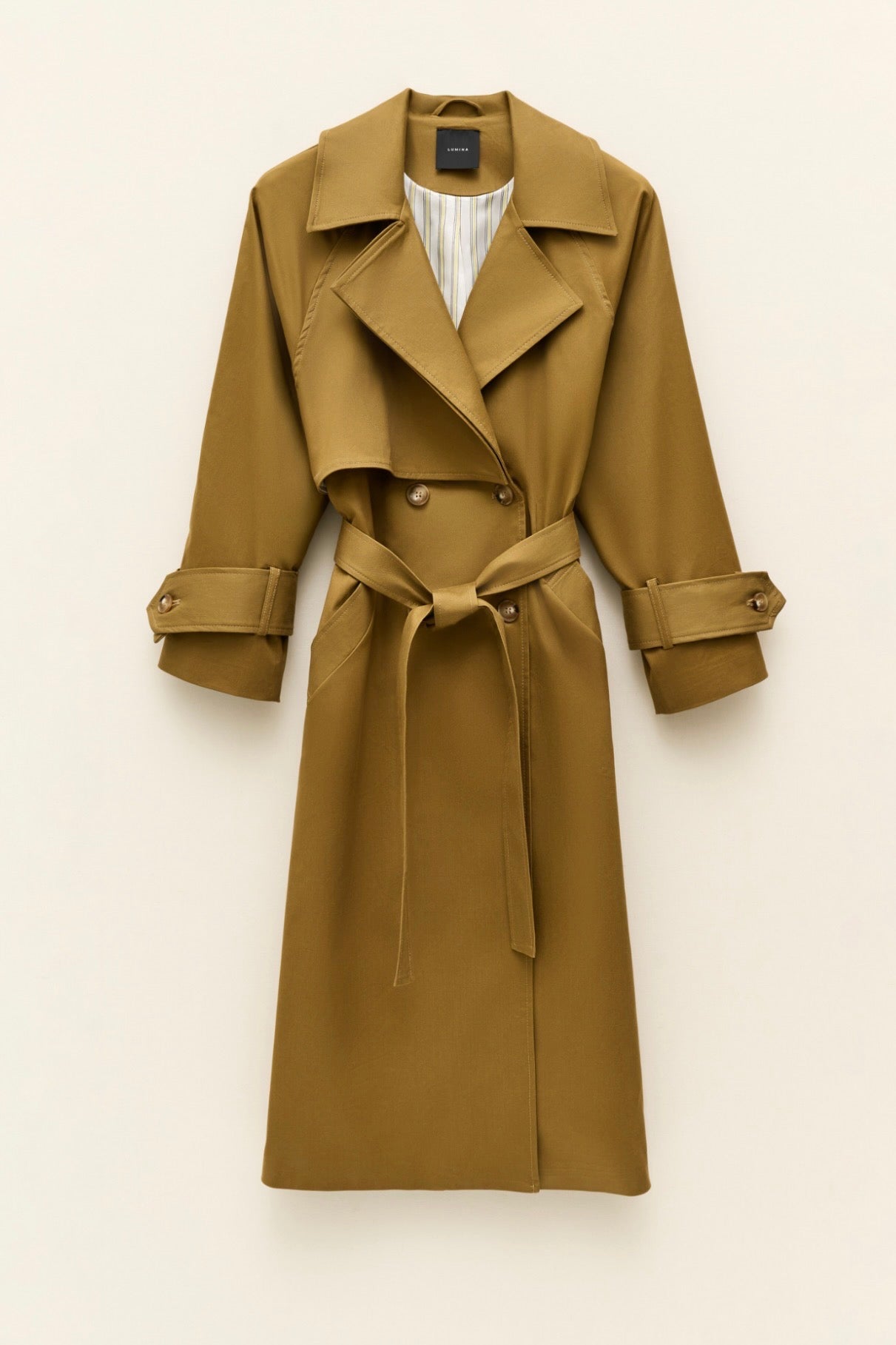 Zvýšit množství produktu Dlouhý béžový bavlněný trenčkot s vázáním