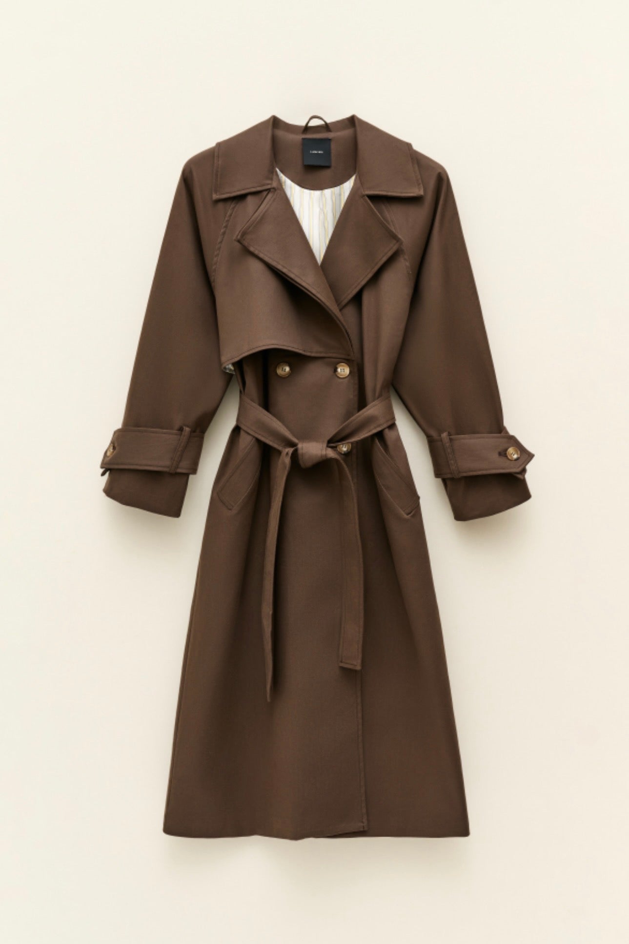 Dlouhý hnědý bavlněný trenčkot s vázáním