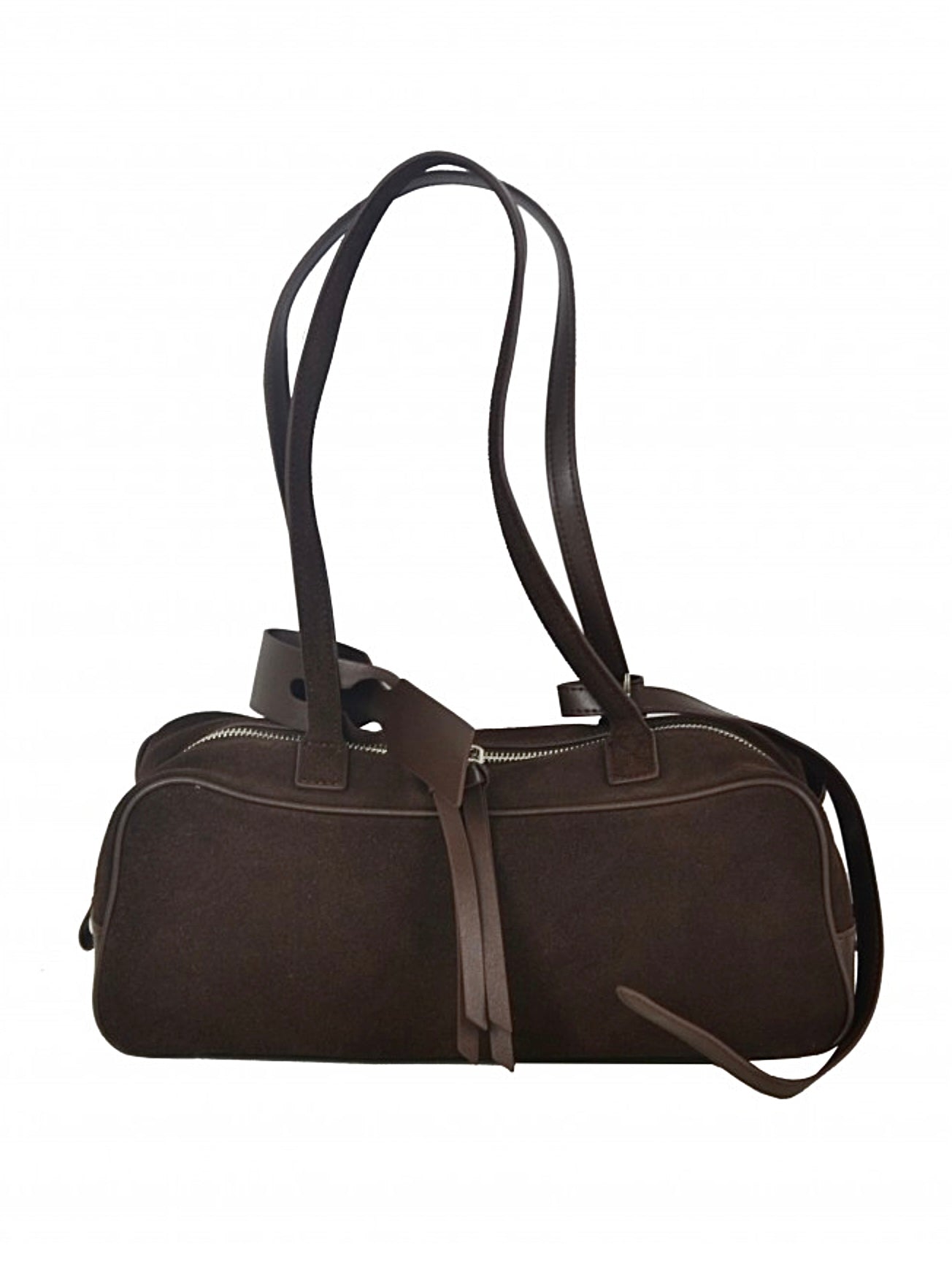 Snížit množství produktu Hnědá podlouhlá kabelka na rameno z broušené kůže