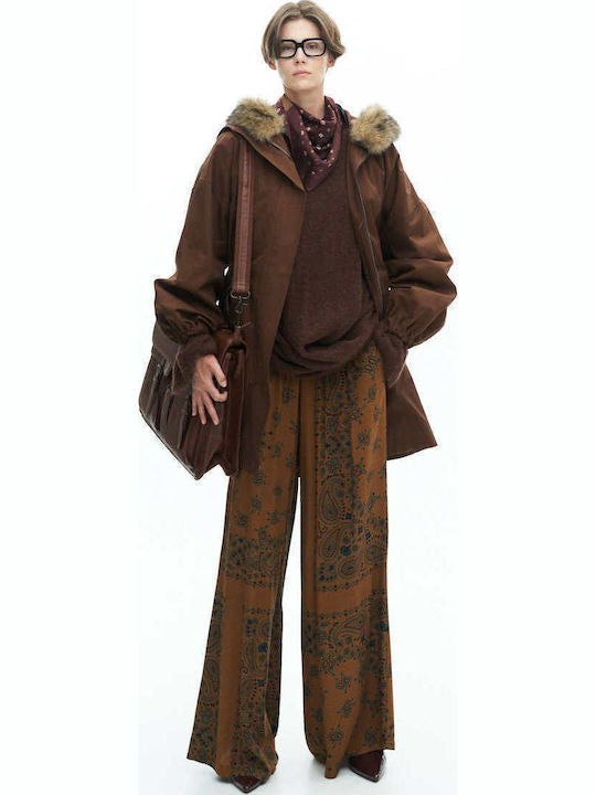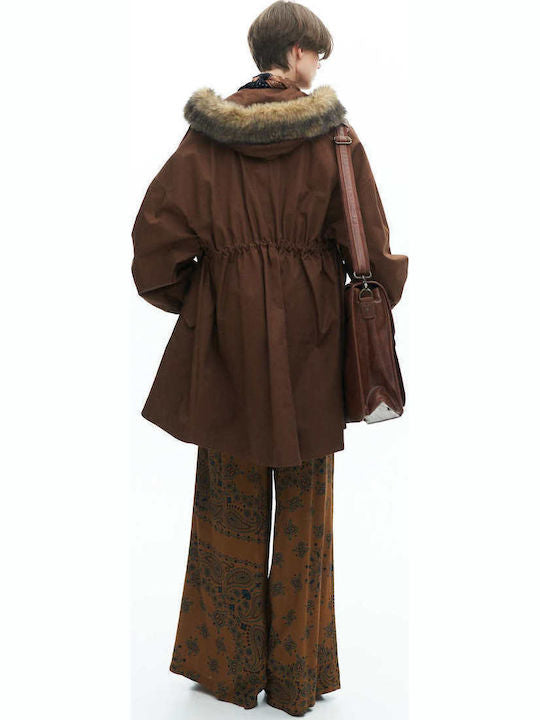 Hnědá parka s kapucí a odnímatelná kožešinou