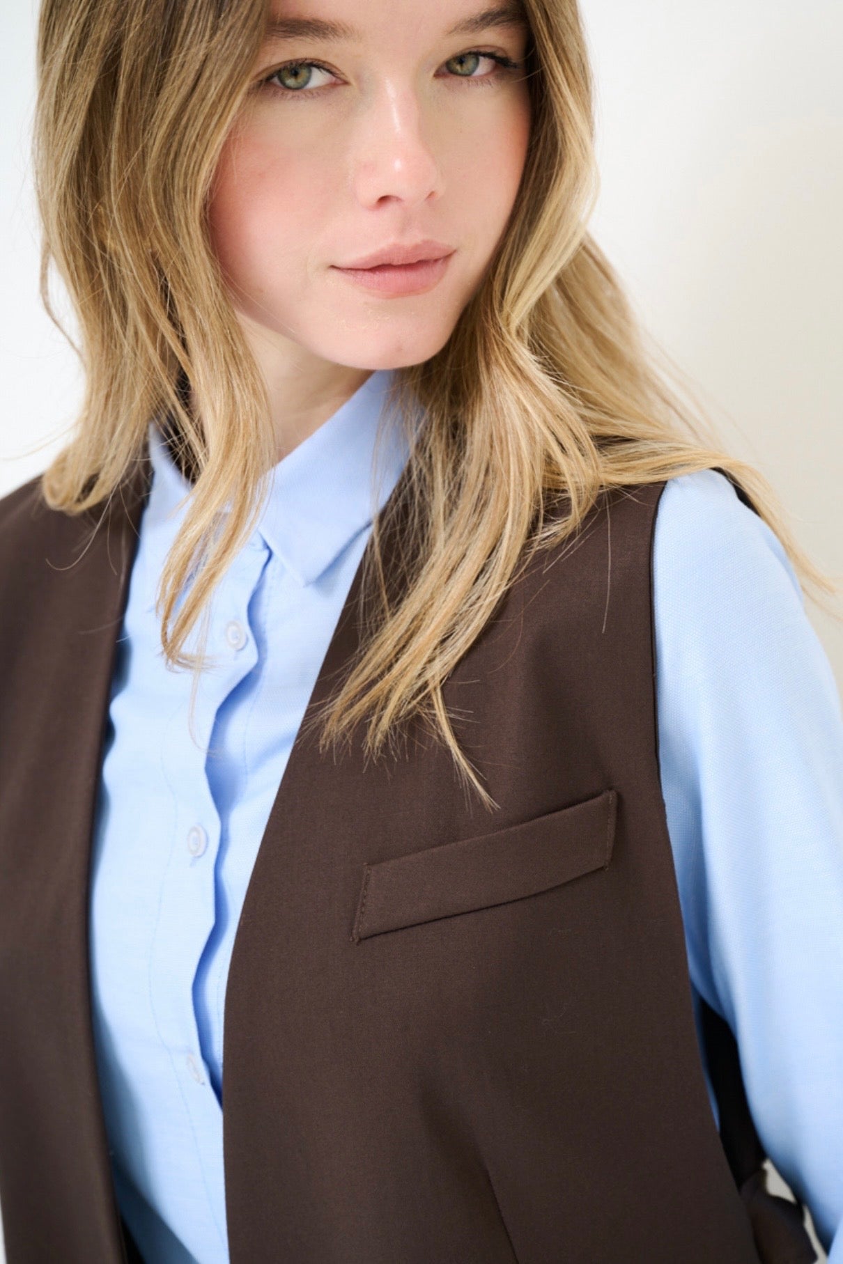 Dlouhá vypasovaná hnědá vesta