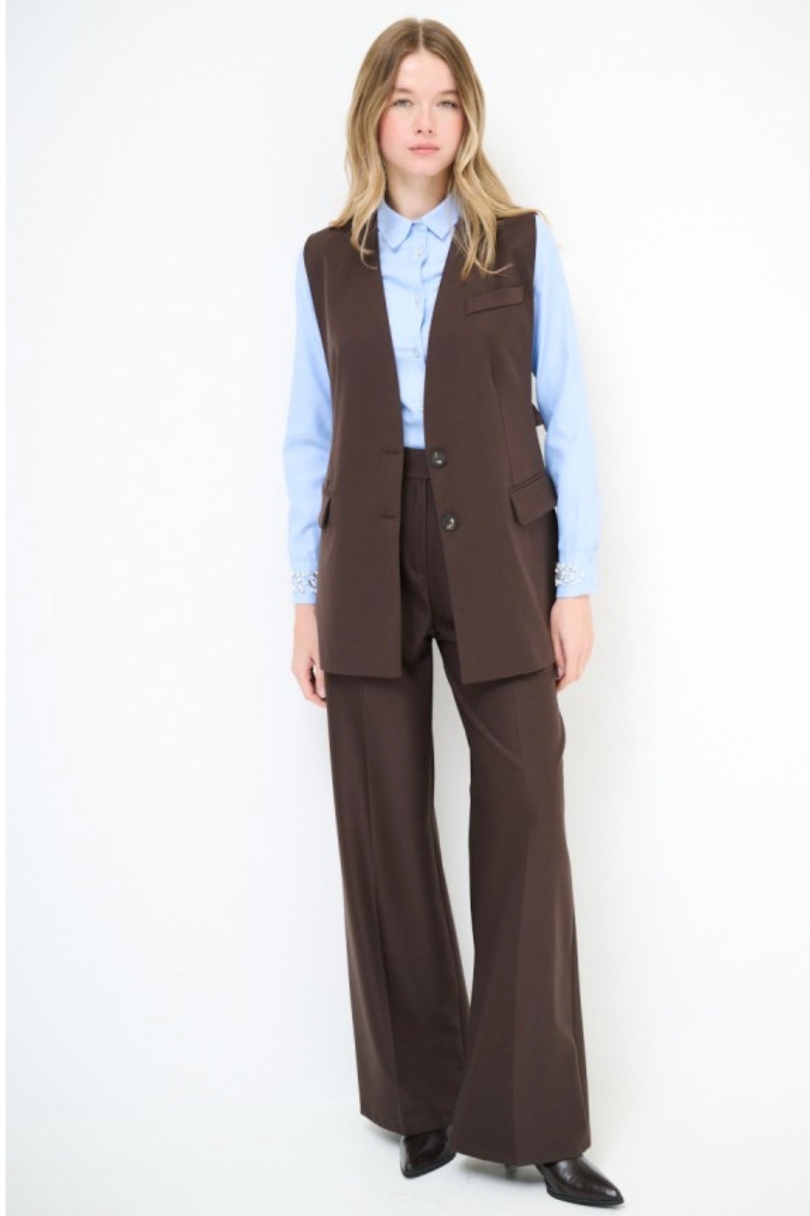 Zvýšit množství produktu Dlouhá vypasovaná hnědá vesta
