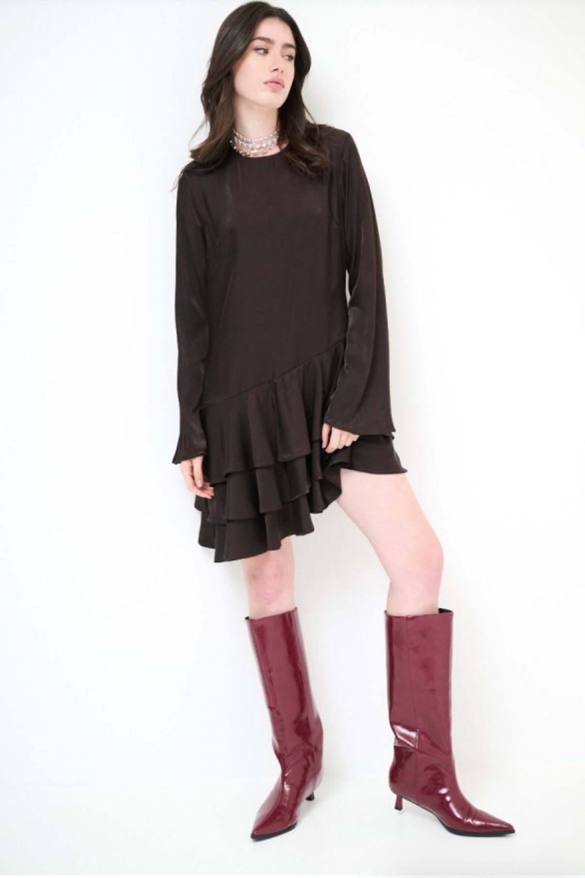 Zvýšit množství produktu Hnědé asymetrické šaty