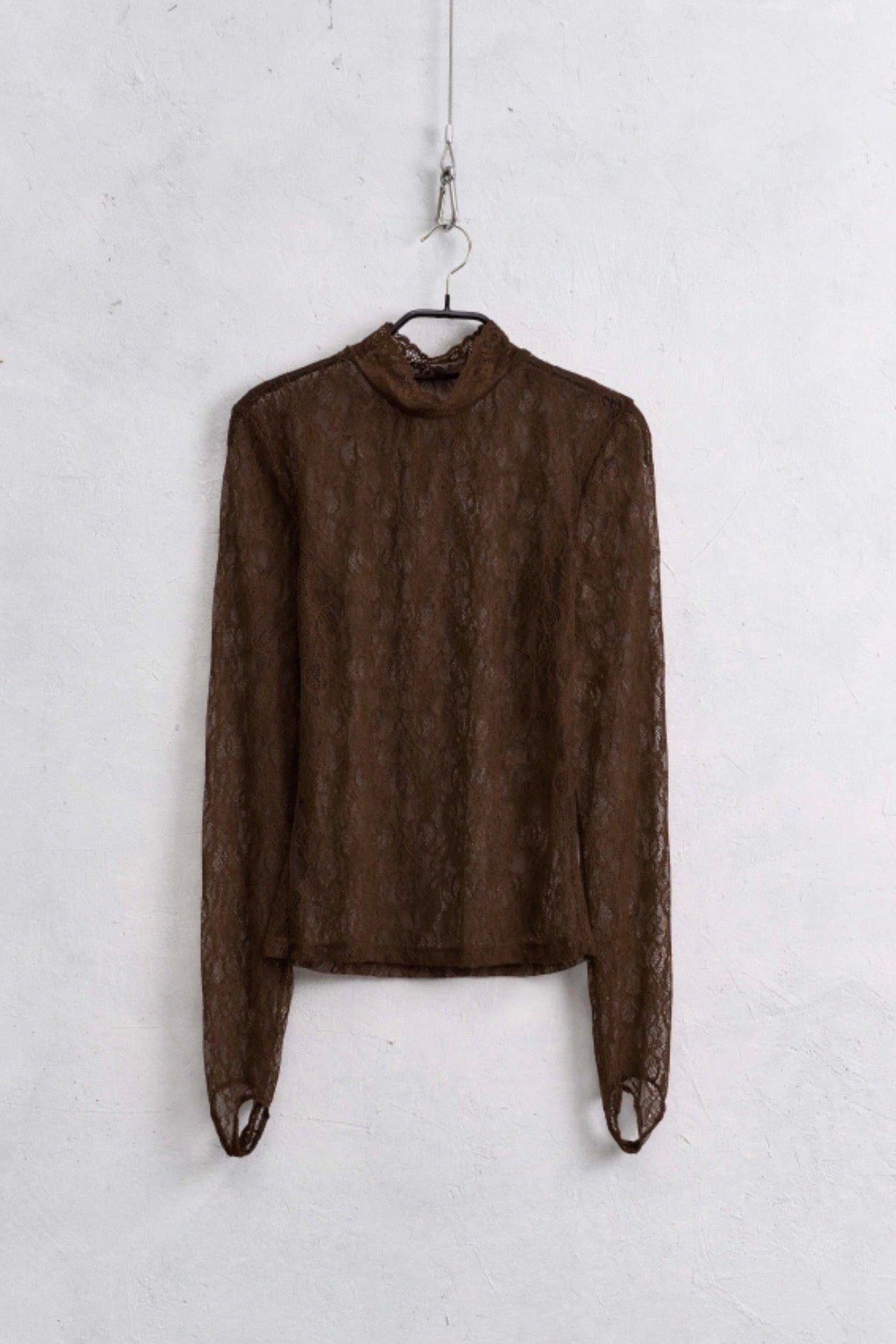Zvýšit množství produktu Hnědý krajkový top se stojáčkem