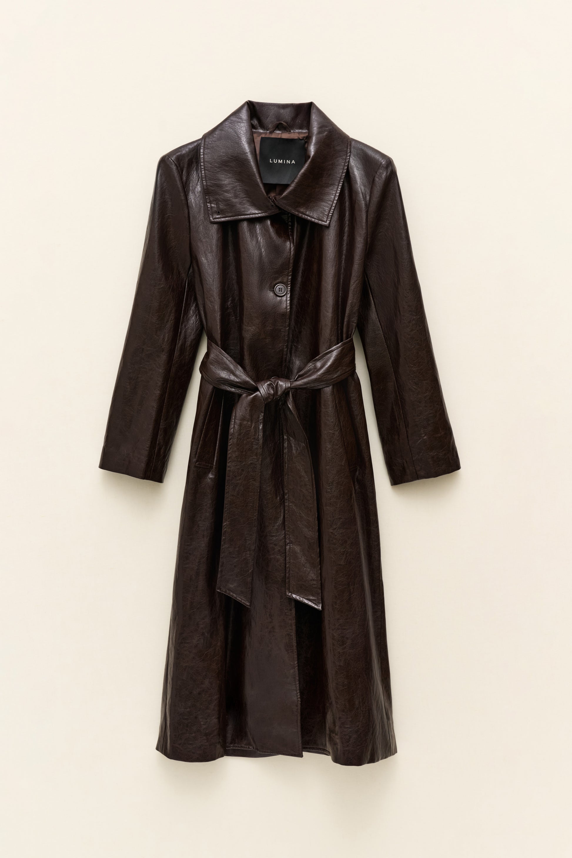 Hnědý trenčkot z eko kůže