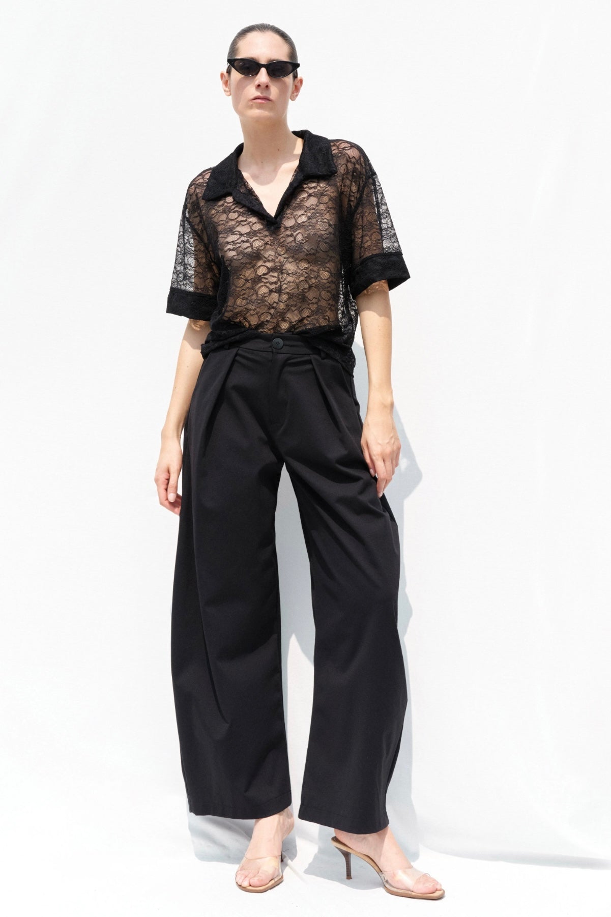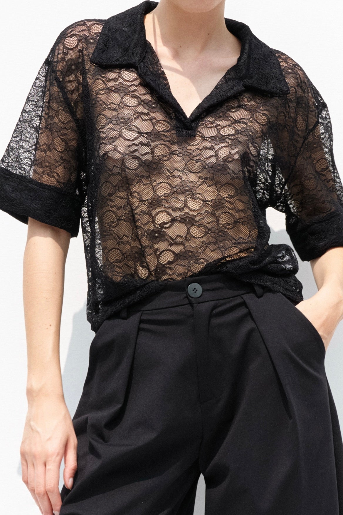 Snížit množství produktu Krajkový černý polo top