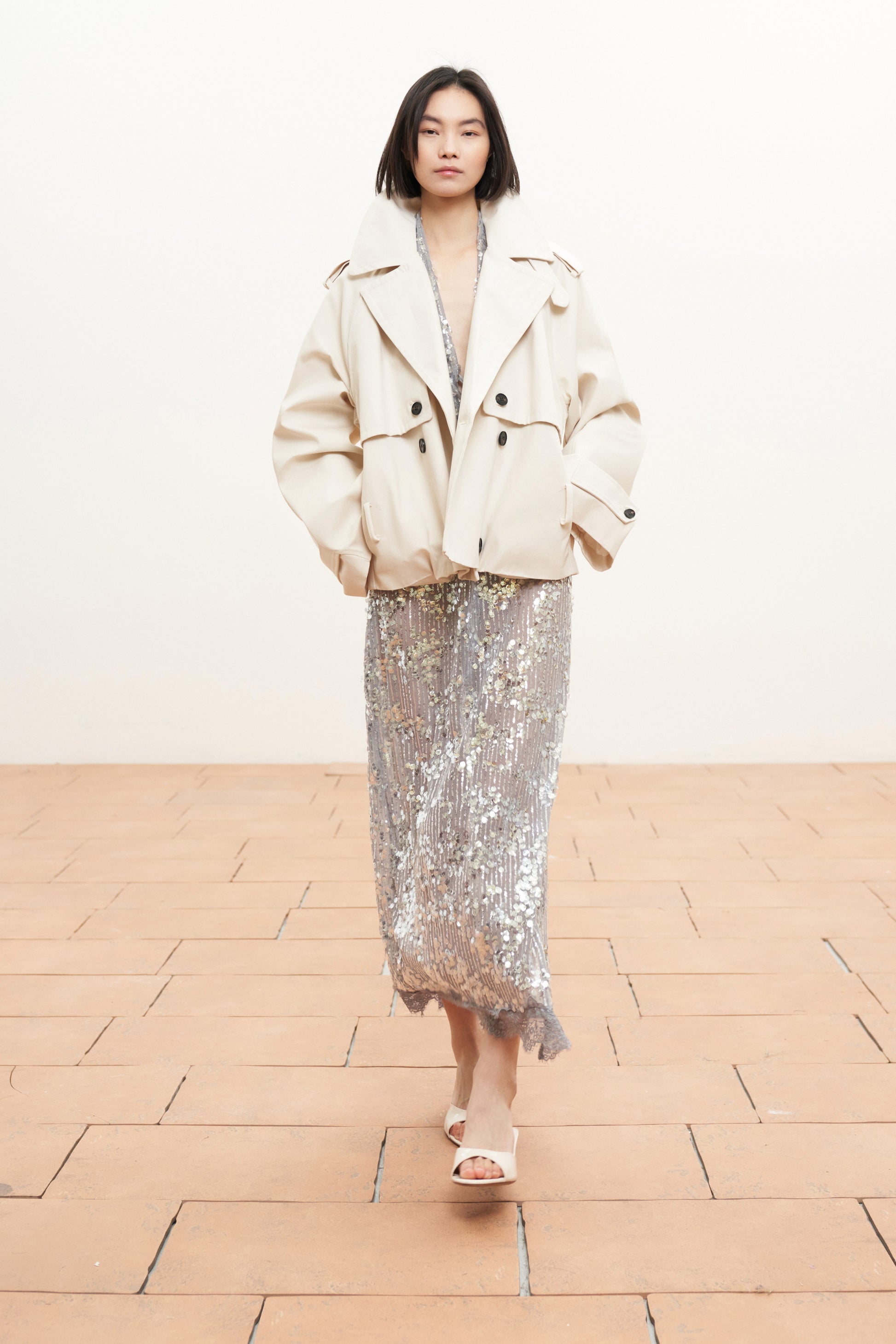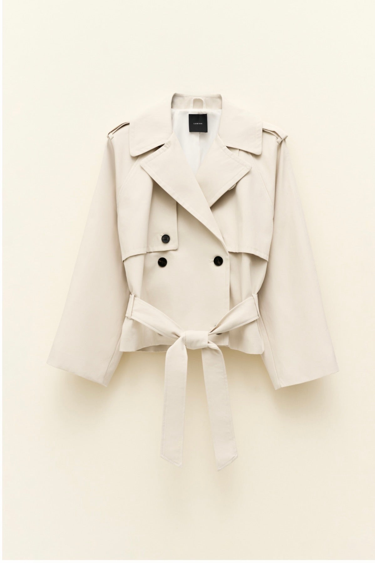 Snížit množství produktu Krátký krémový bavlněný trenčkot