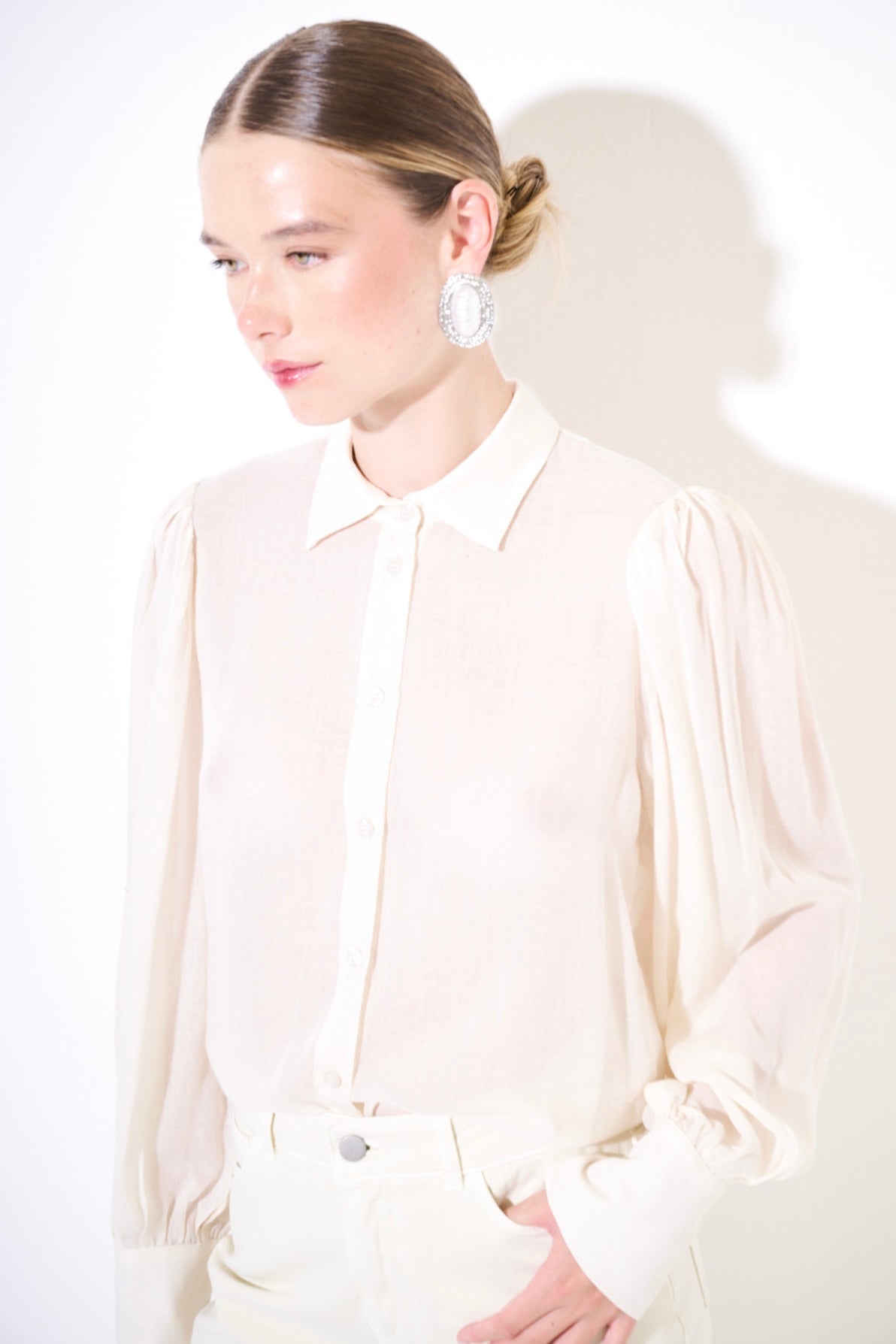 Snížit množství produktu Krémová halenka s příměsí vlny