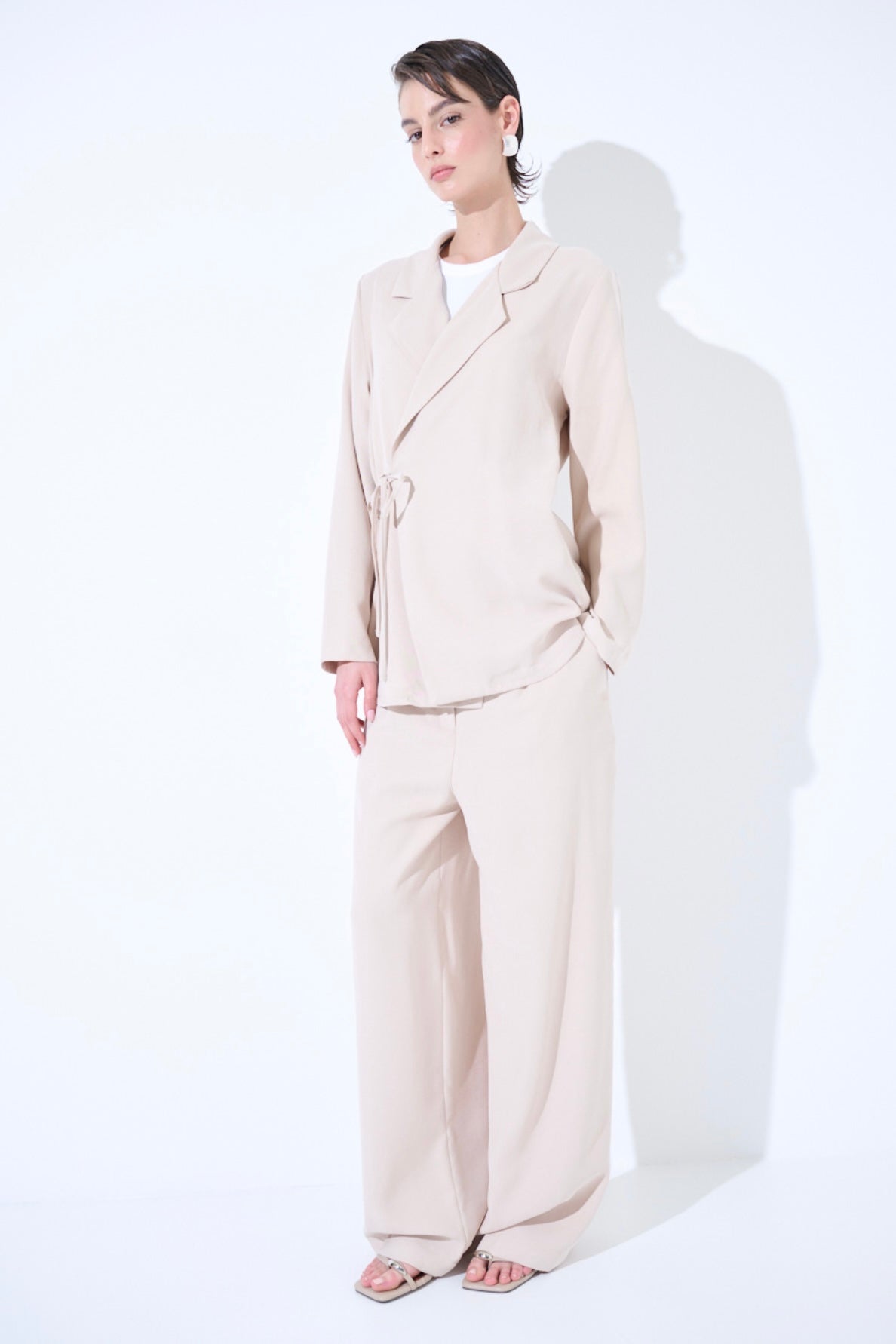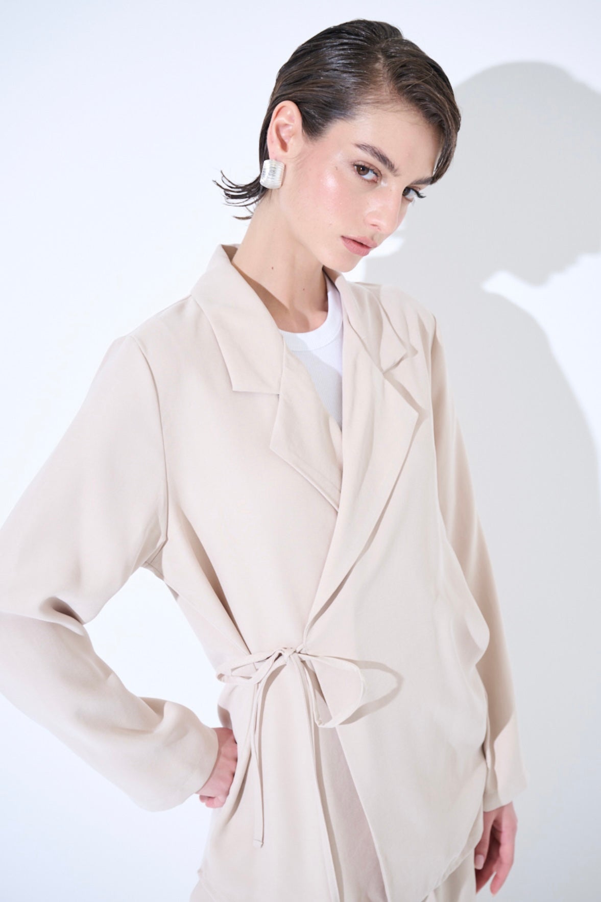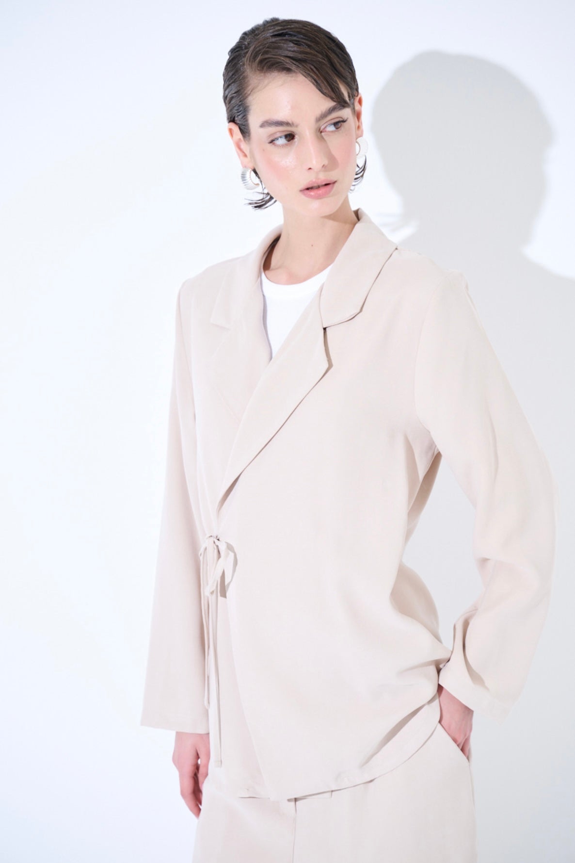Zvýšit množství produktu Krémové modalové zavinovací sako/košile