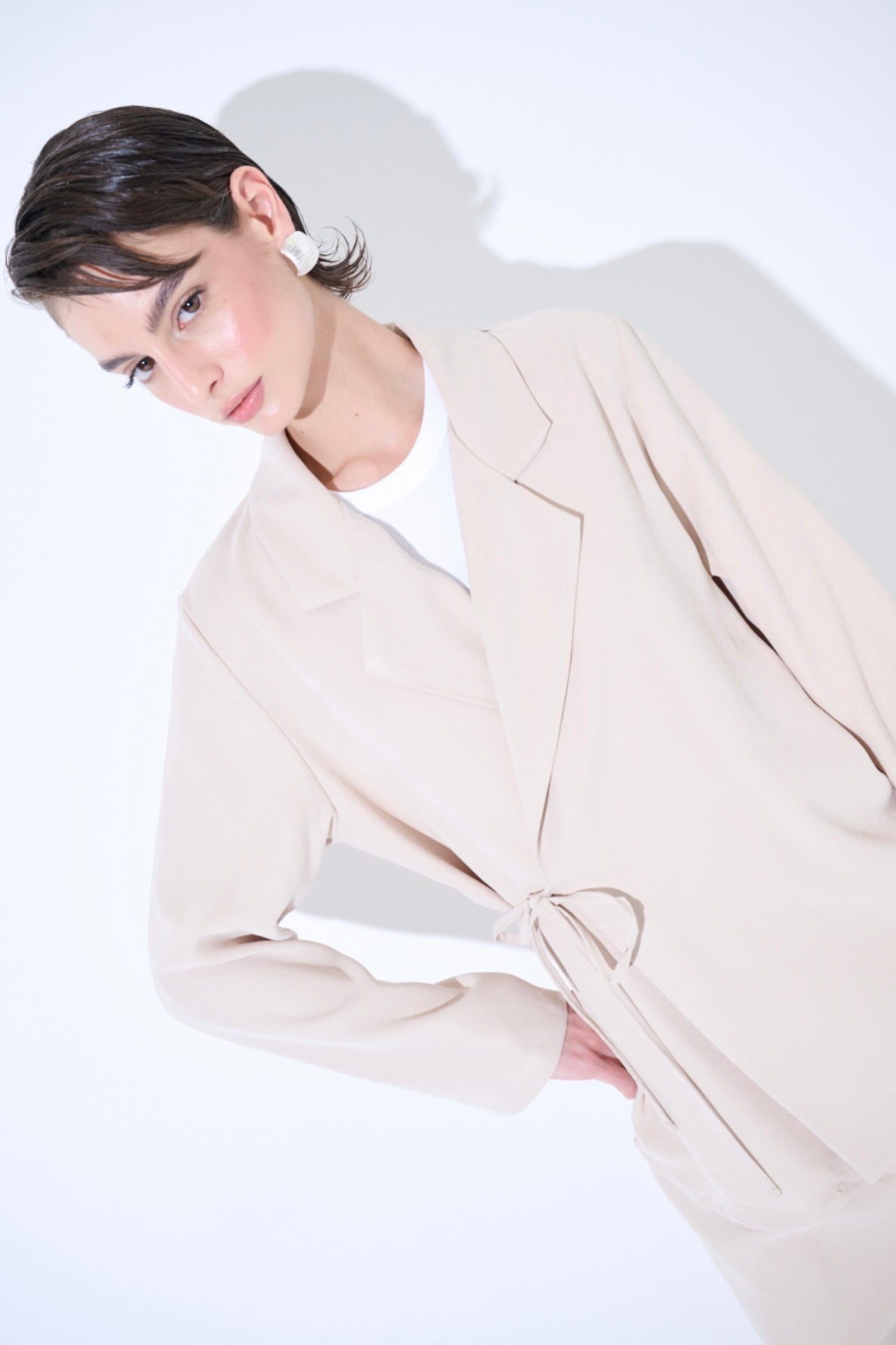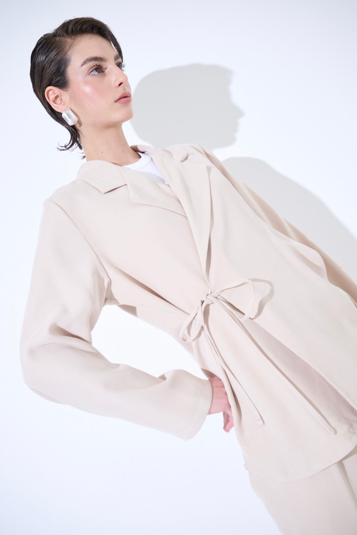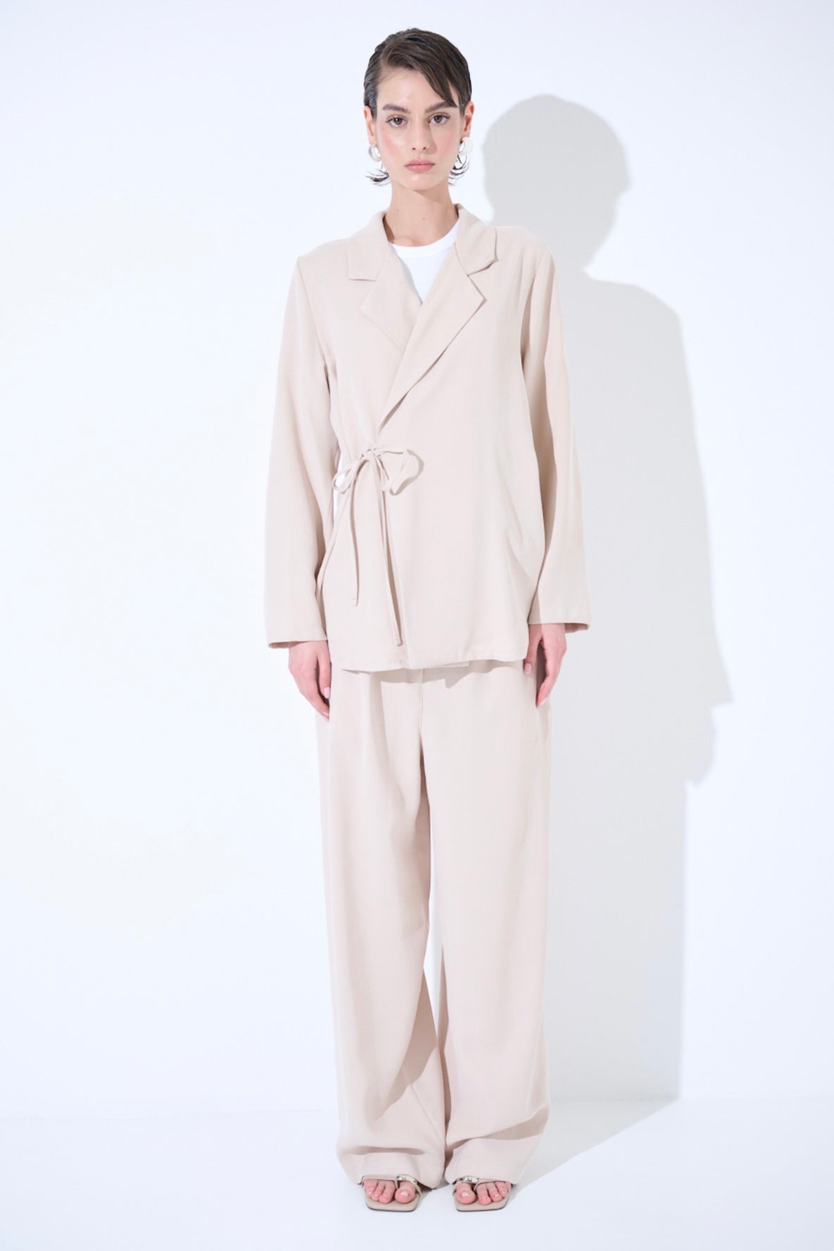Zvýšit množství produktu Krémové modalové zavinovací sako/košile