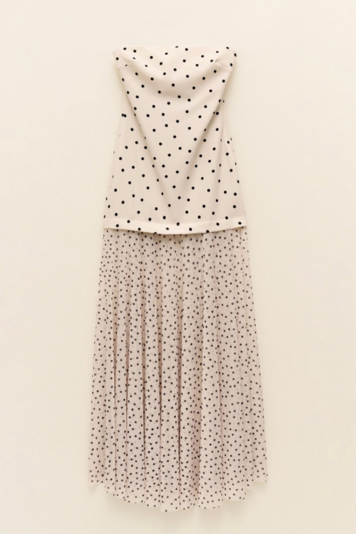 Snížit množství produktu Krémové šaty s puntíky s šálou