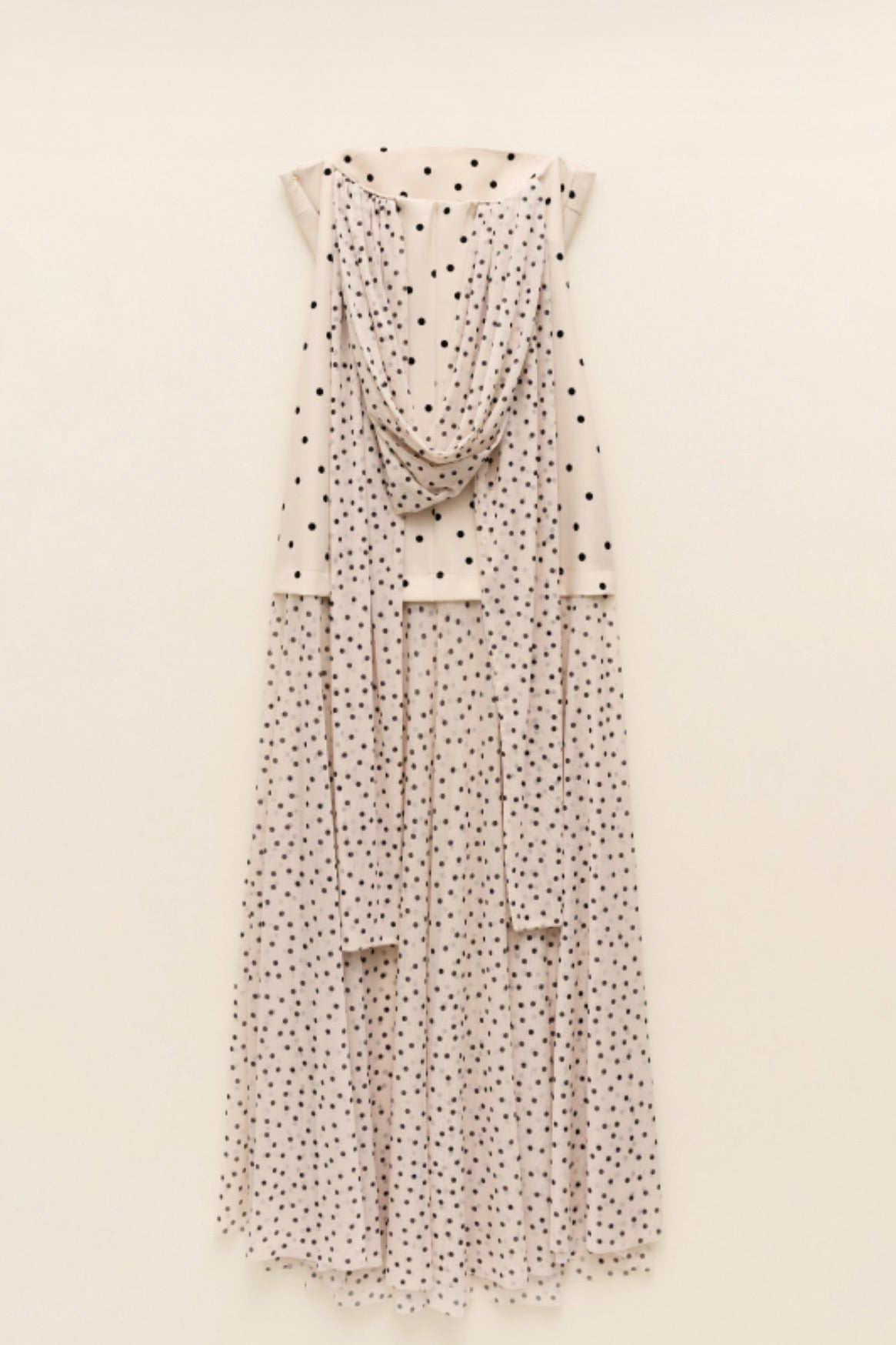 Zvýšit množství produktu Krémové šaty s puntíky s šálou