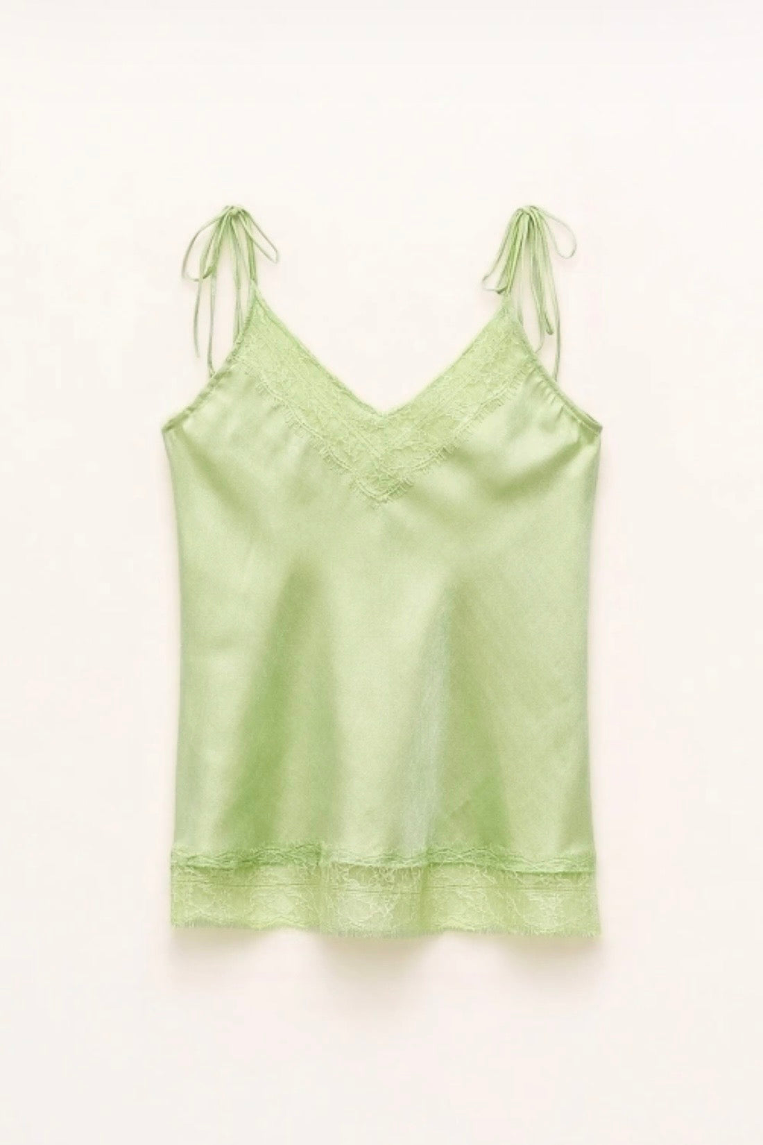 Zvýšit množství produktu Limetkové saténové tílko s krajkou