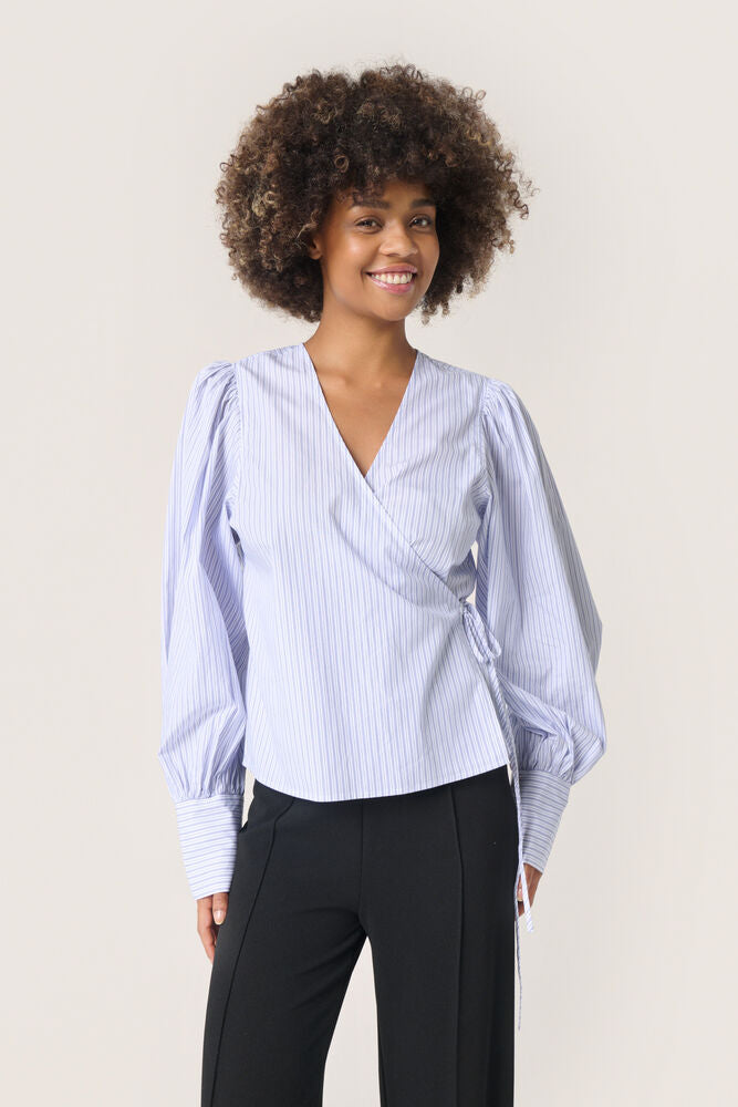 Zvýšit množství produktu Modrá pruhovaná zavinovací halenka