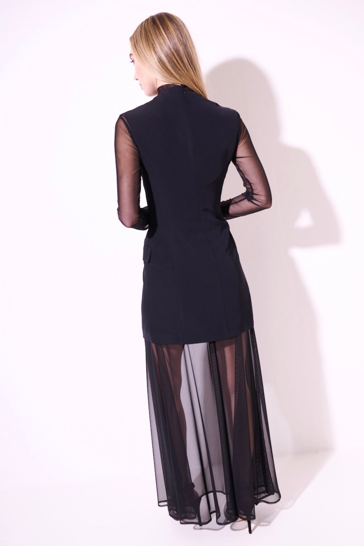 Poloprůsvitné černé dvouvrstvé maxi šaty