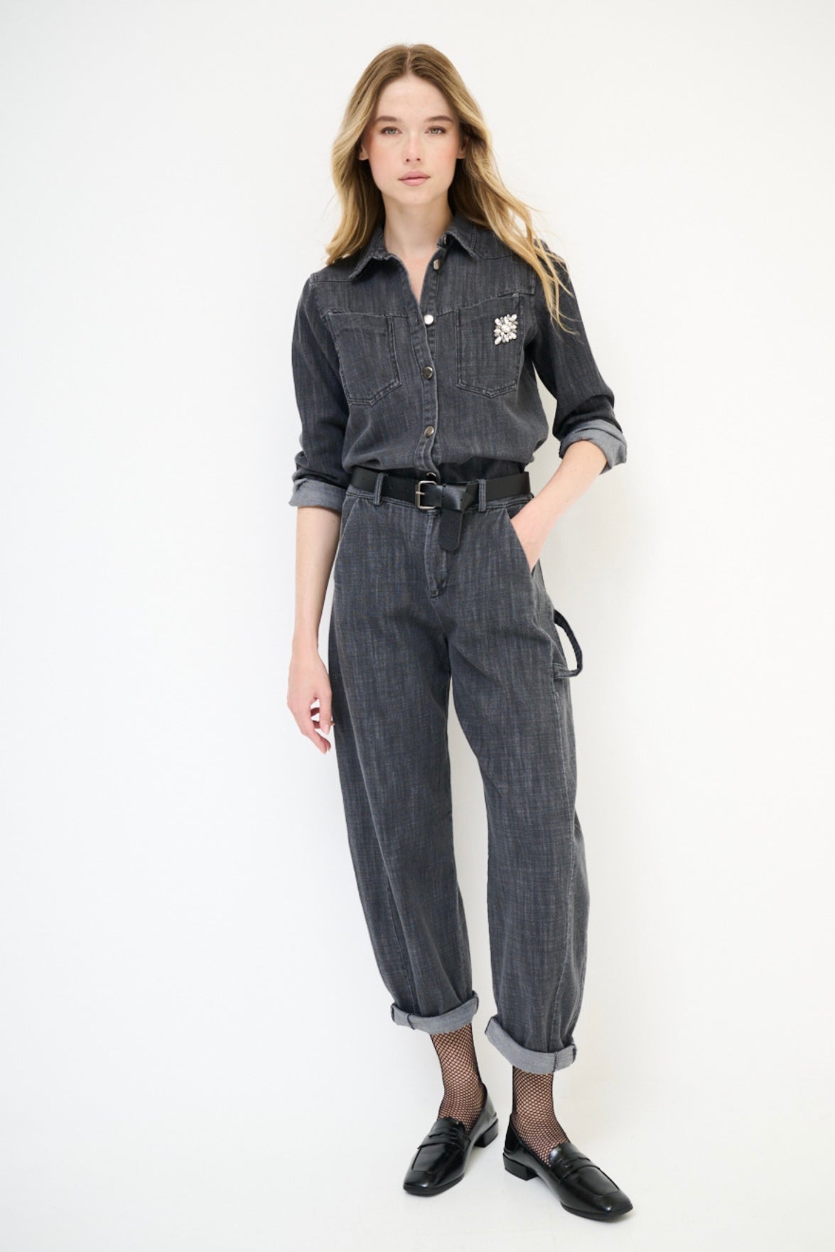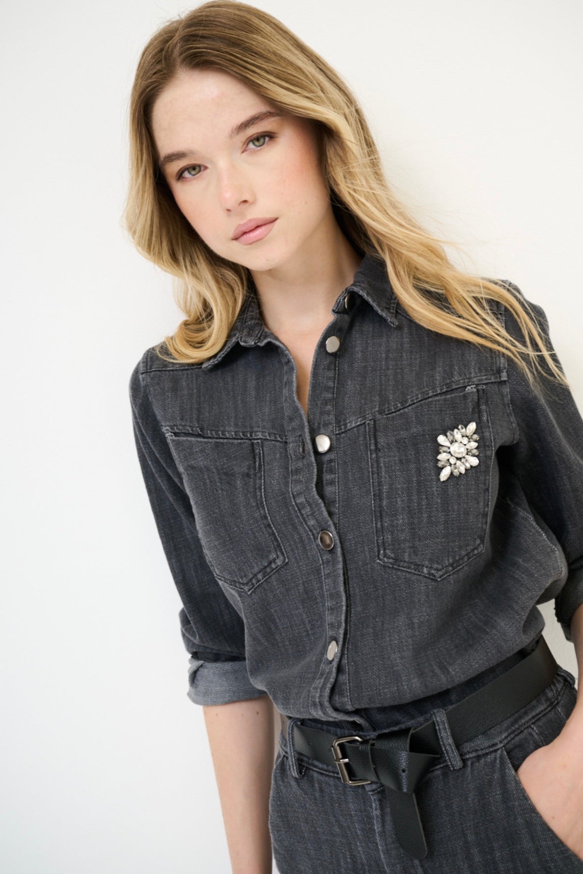 Zvýšit množství produktu Šedá denimová košilová bundička