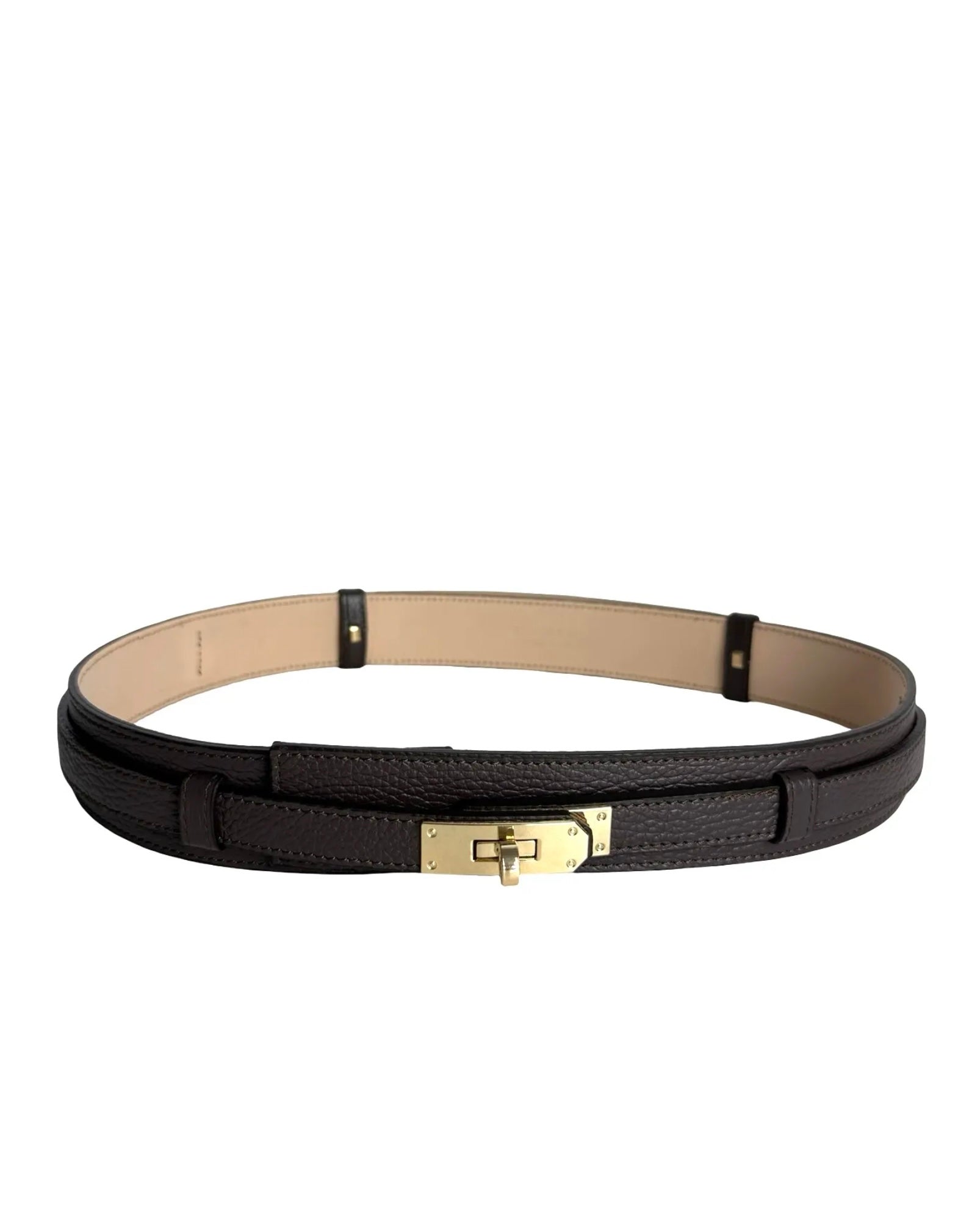 Silný čokoládový kožený nastavitelný pásek se zlatou sponou