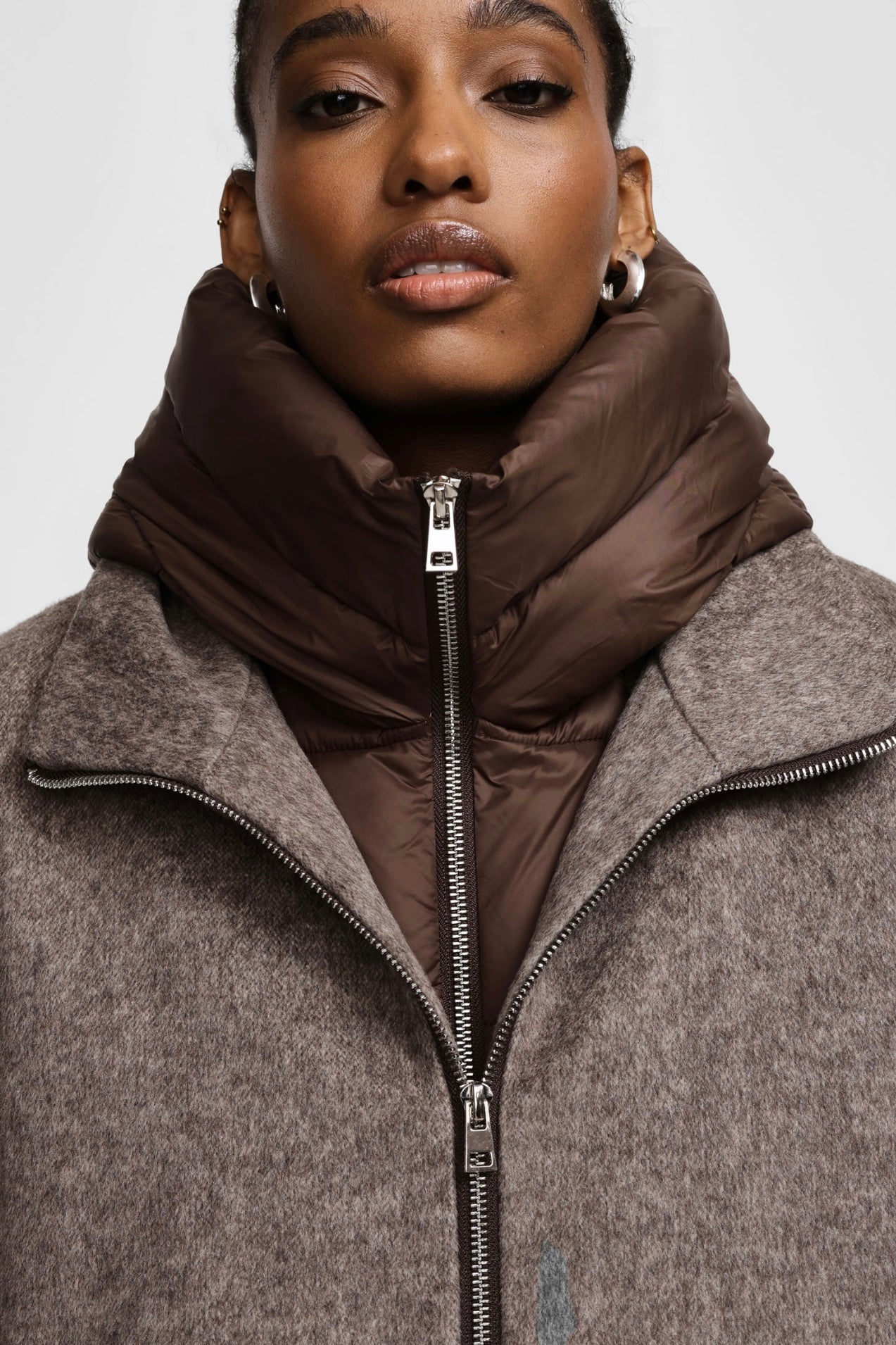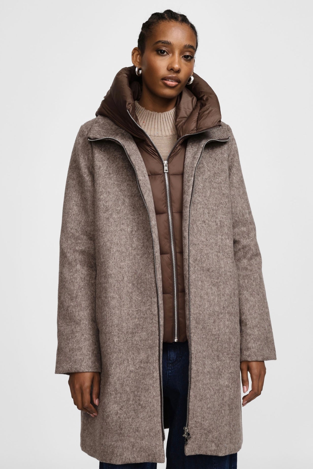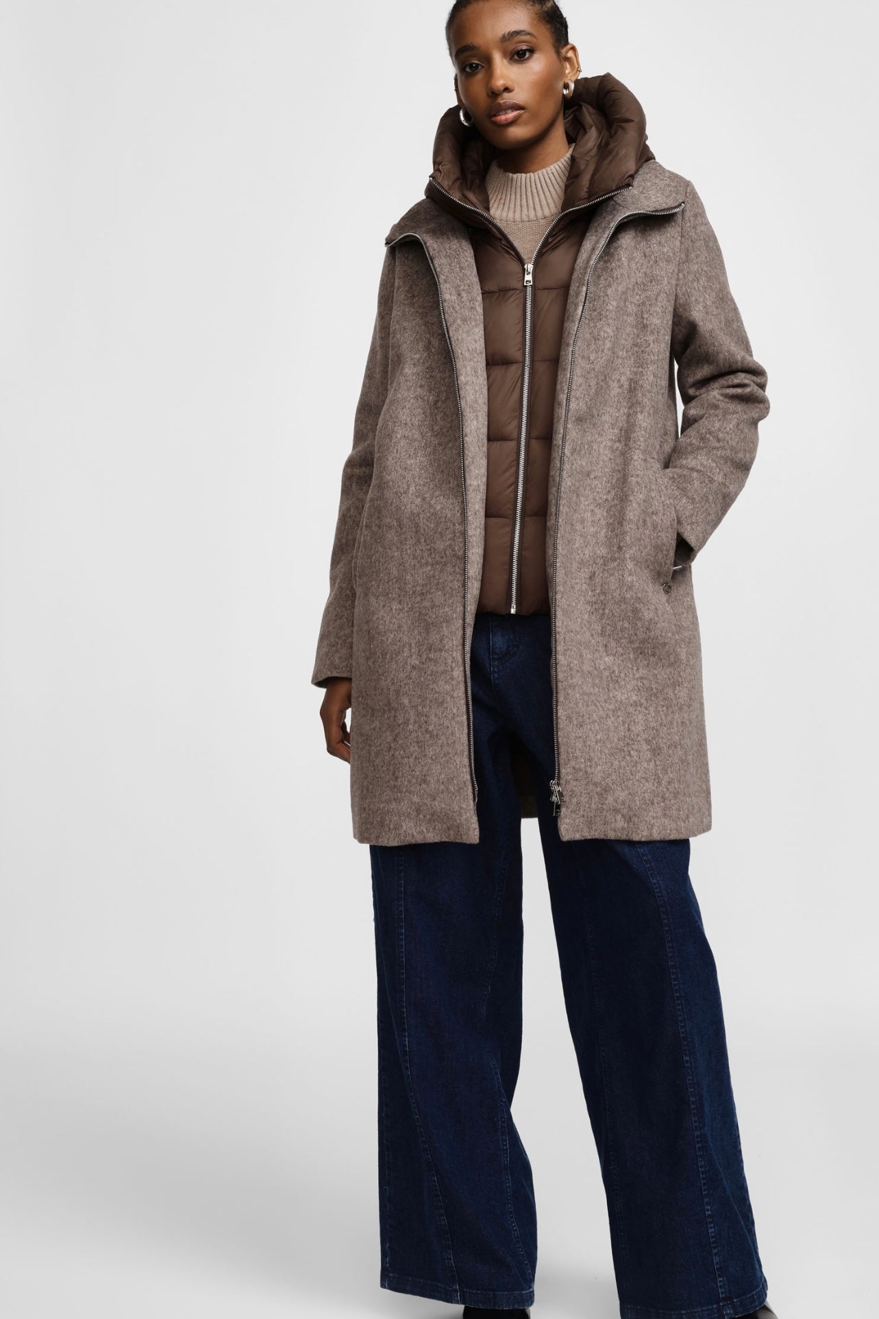 Zvýšit množství produktu Taupe vlněný kabát s odepínatelnou vsadkou