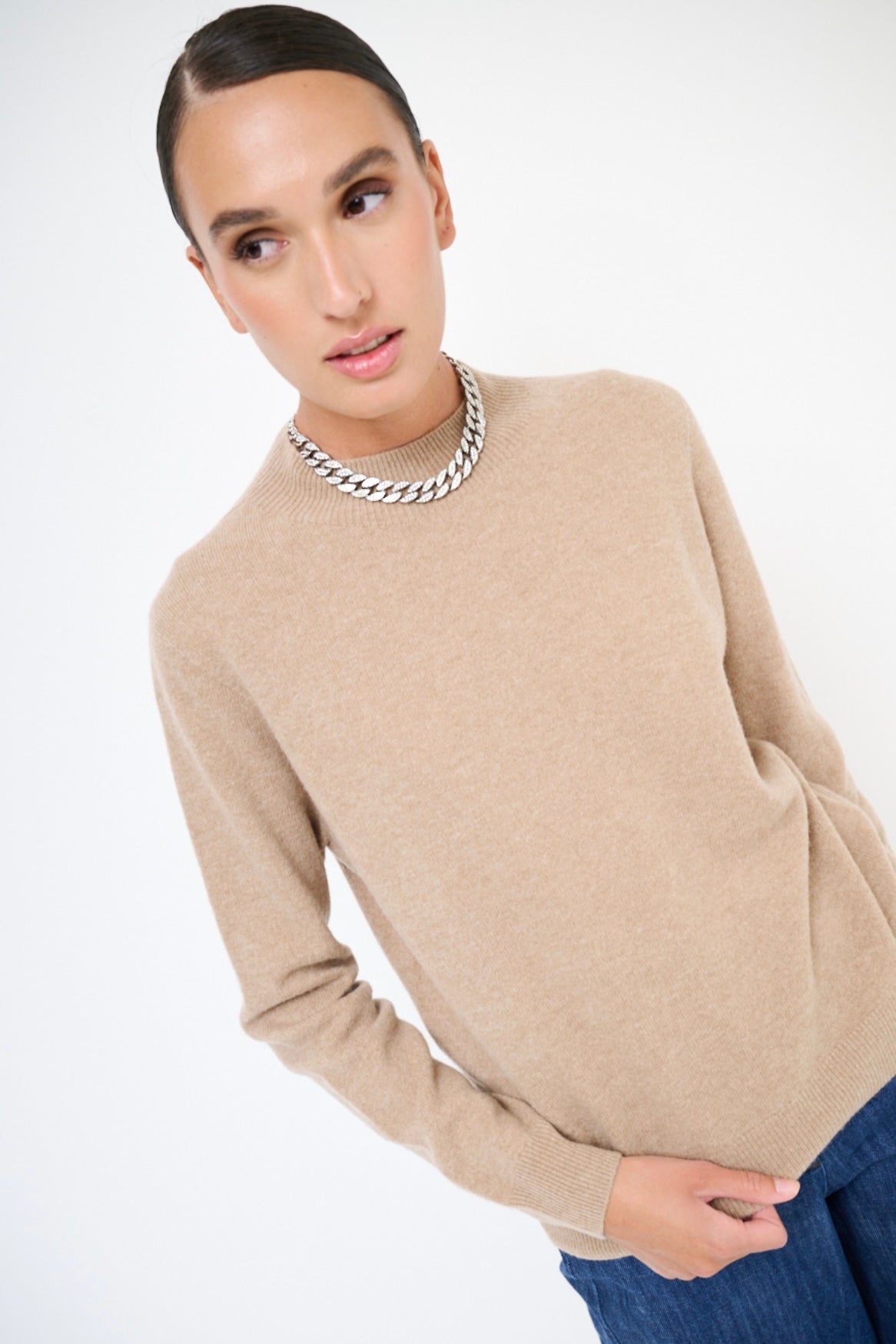 Velbloudí vlněný svetr se stojáčkem s kašmírem