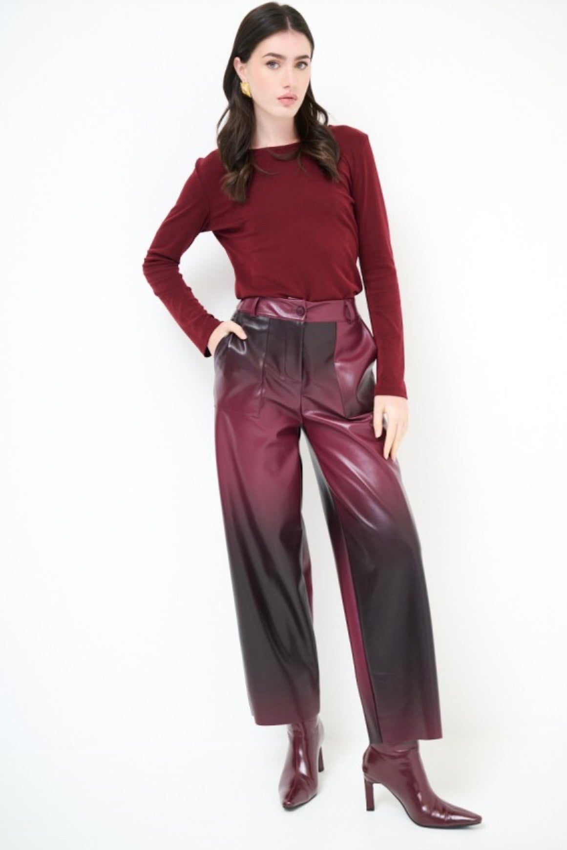 Vínové dvoubarevné kalhoty nad kotníky z eko kůže