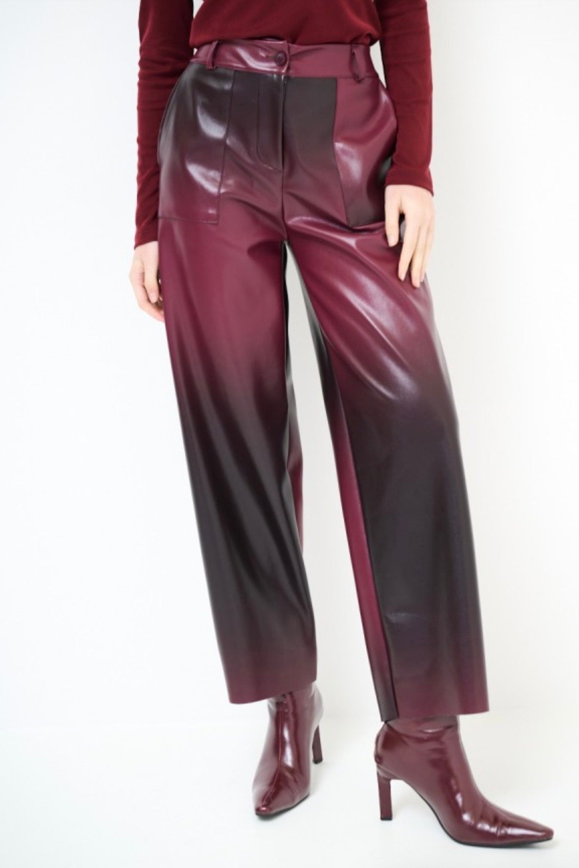 Snížit množství produktu Vínové dvoubarevné kalhoty nad kotníky z eko kůže