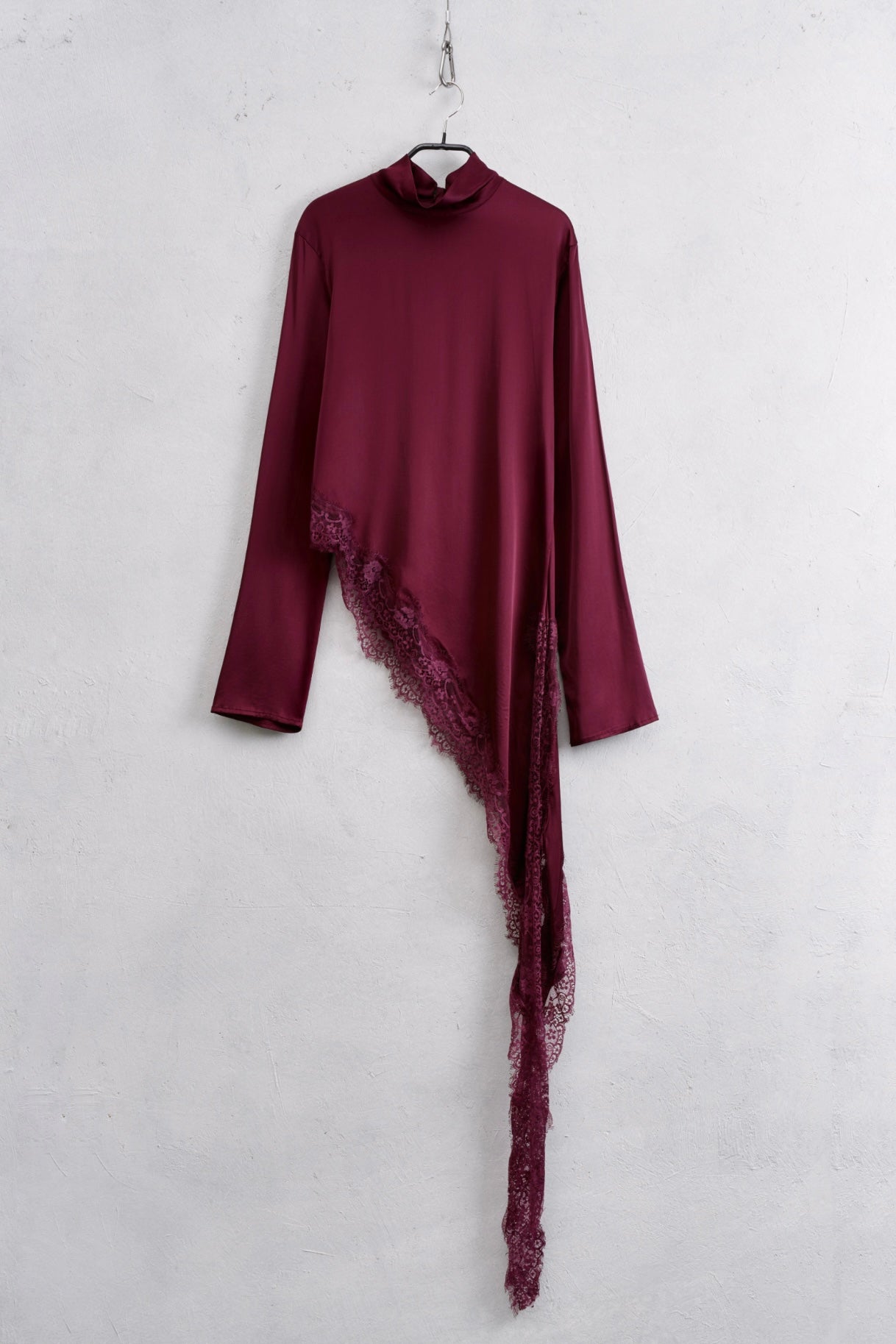 Snížit množství produktu Vínový asymetrický krajkový top