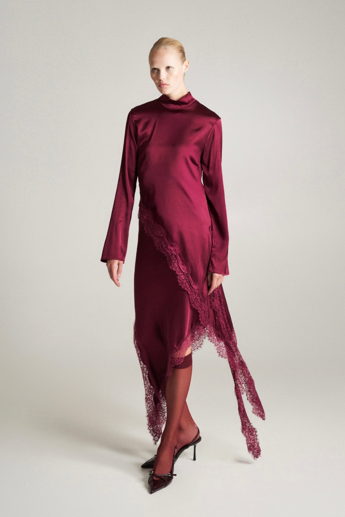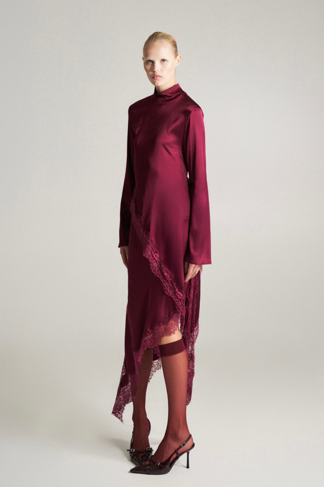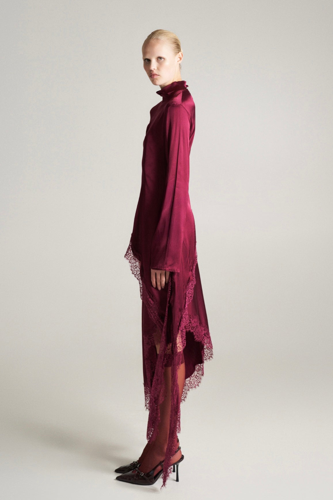 Vínový asymetrický krajkový top