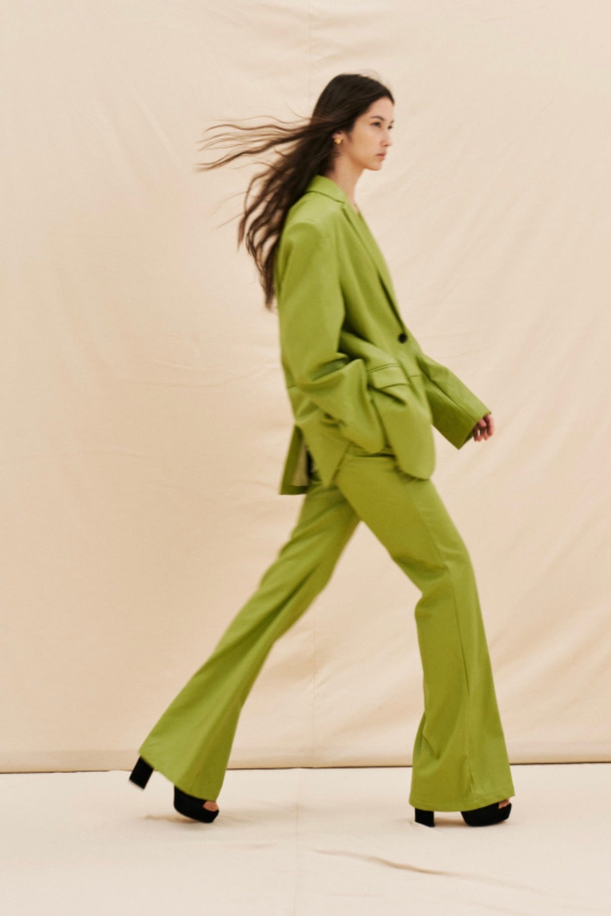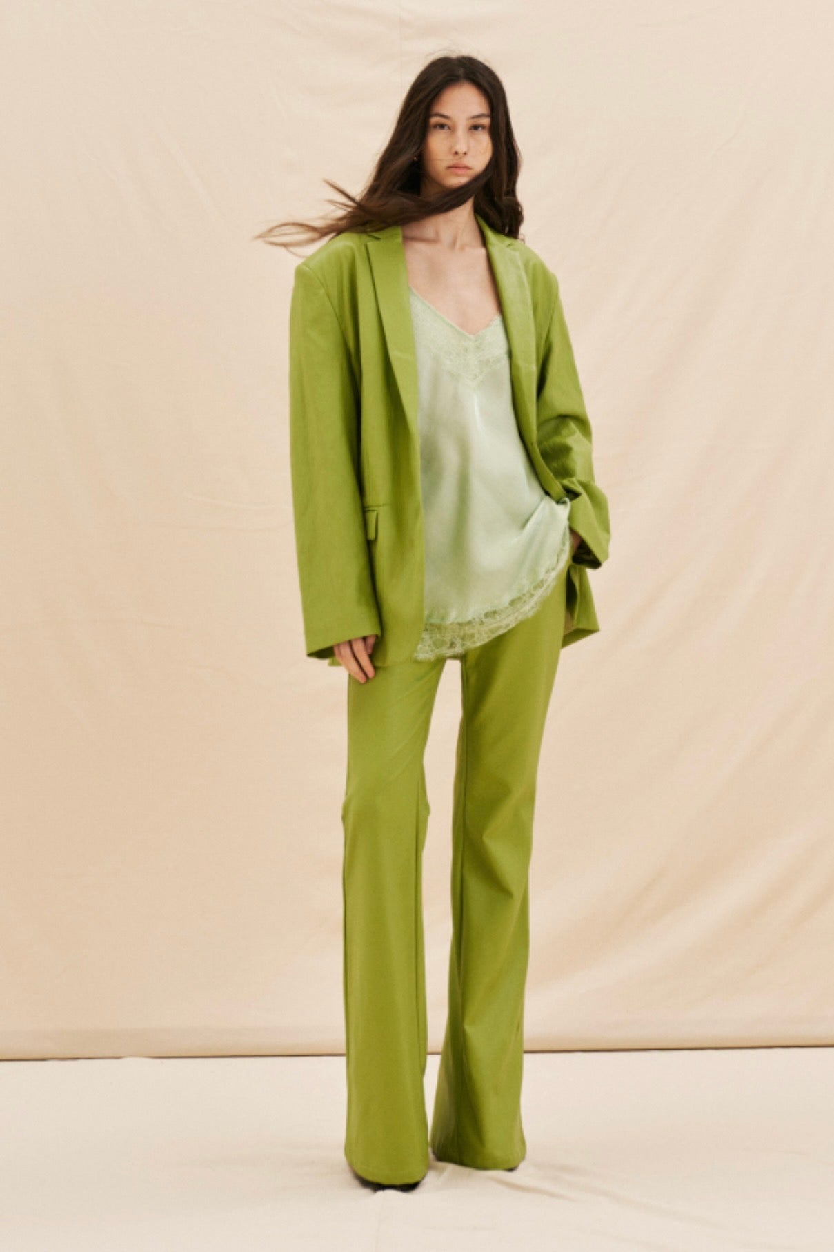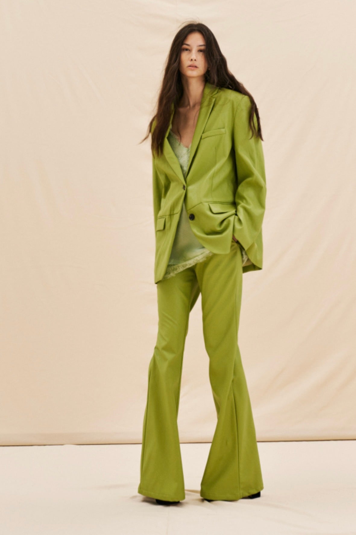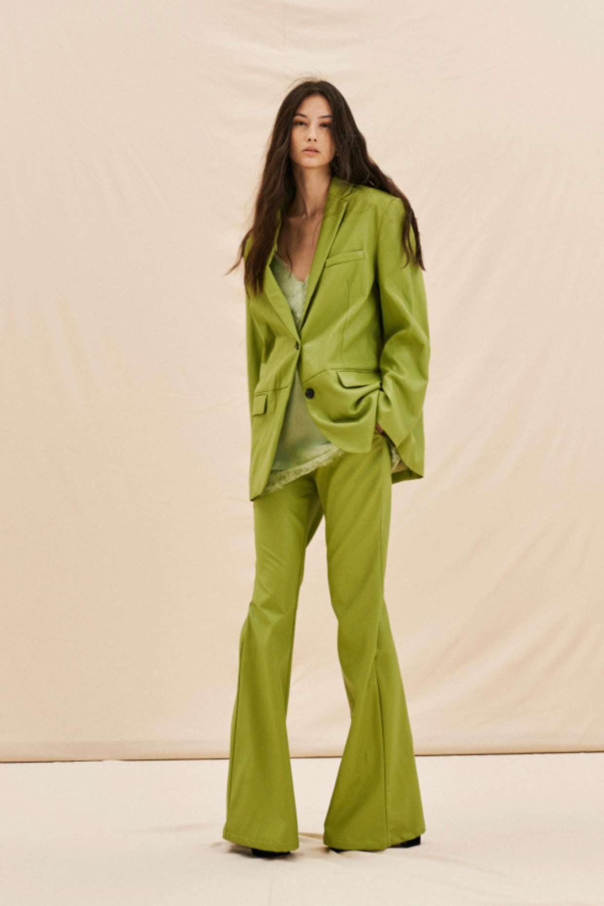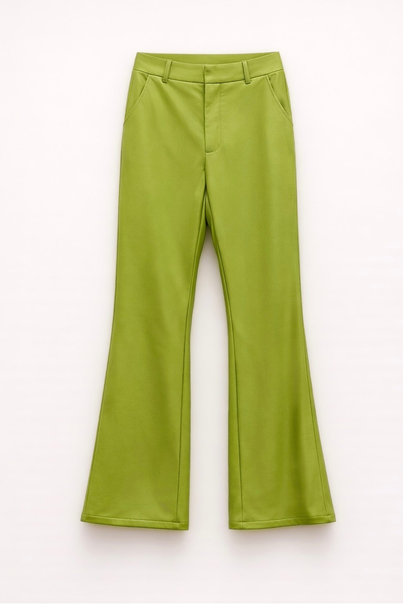 Zelené flared kalhoty z eko kůže