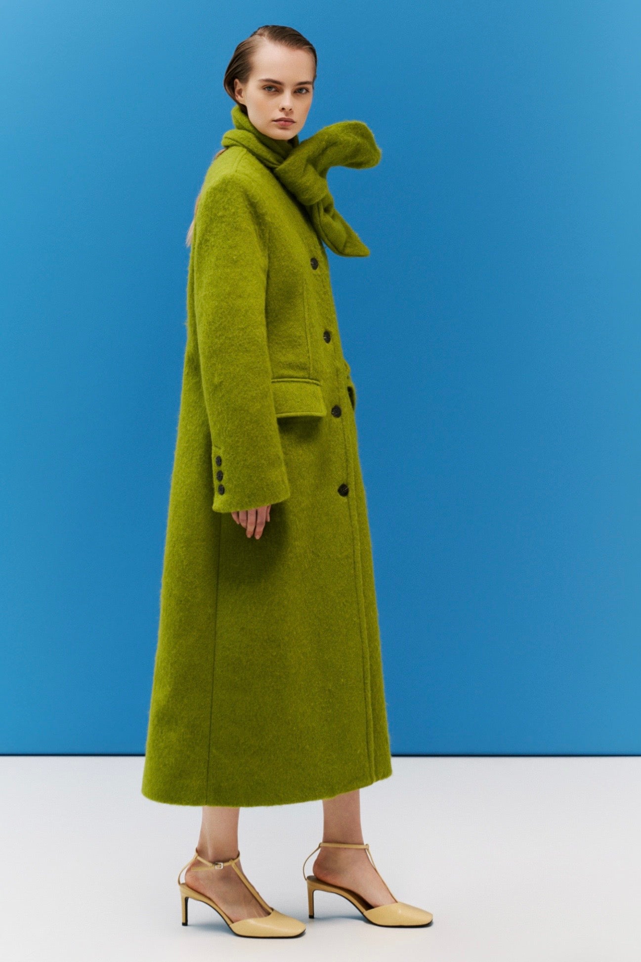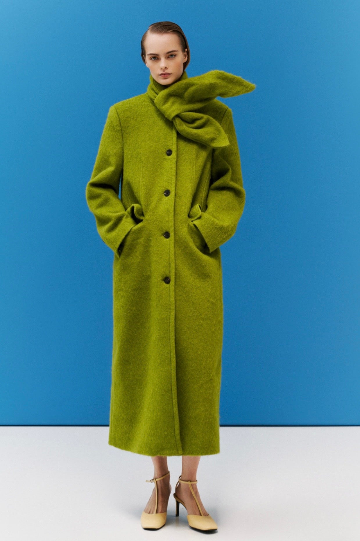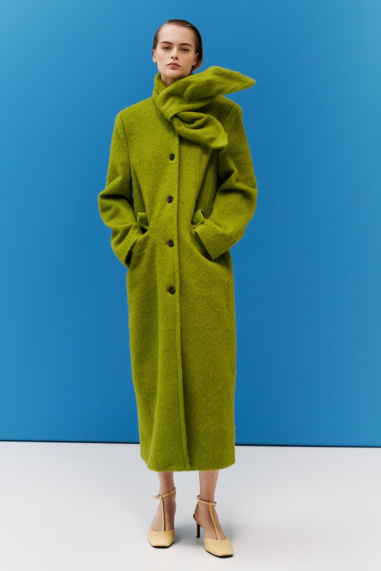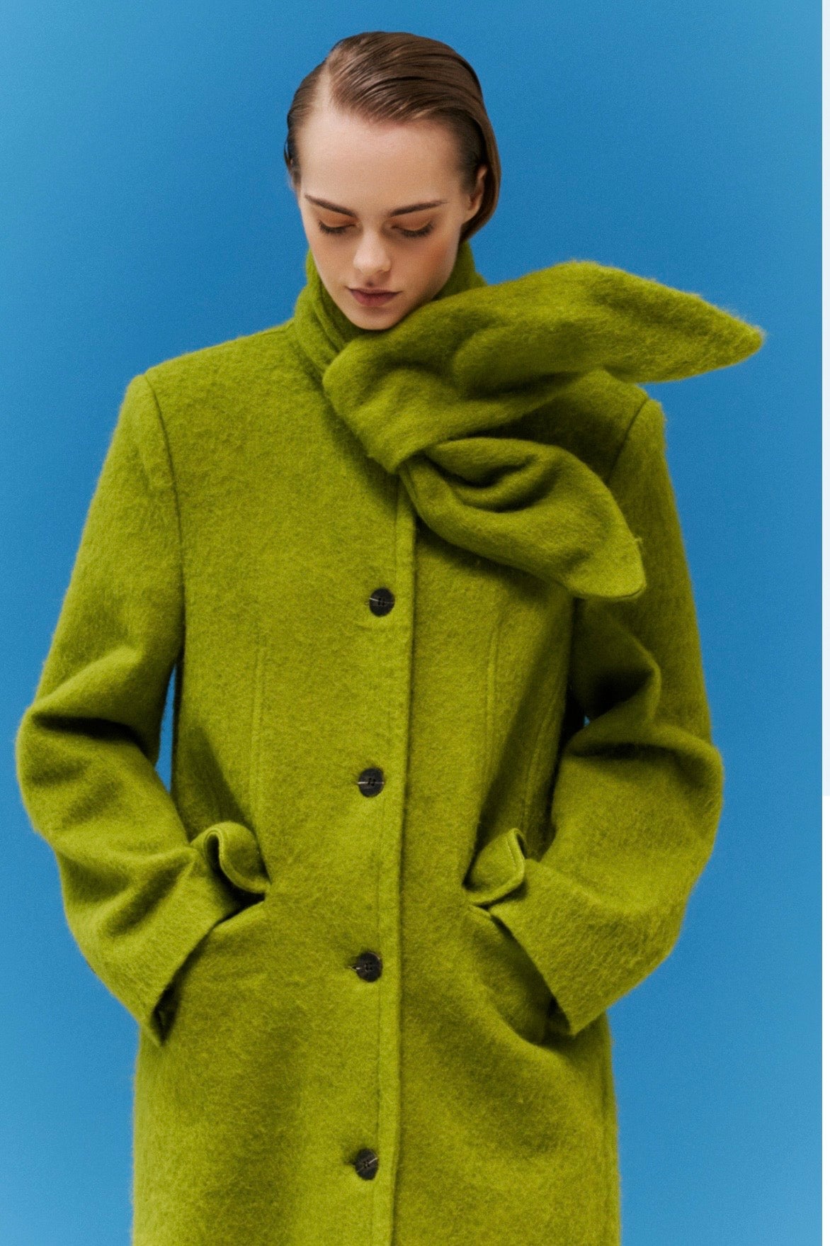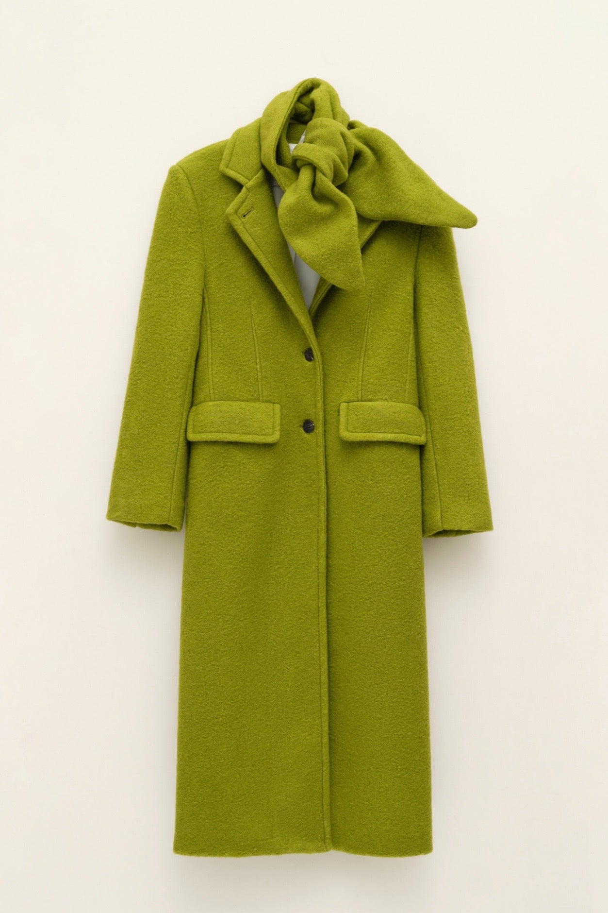 Zelený dlouhý vlněný kabát